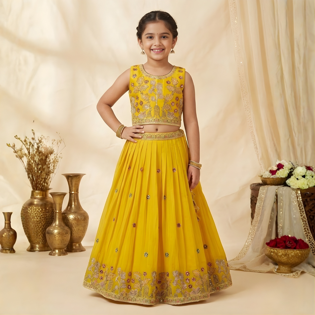 Trendy Sleeveless Lehenga Choli Set For Girls