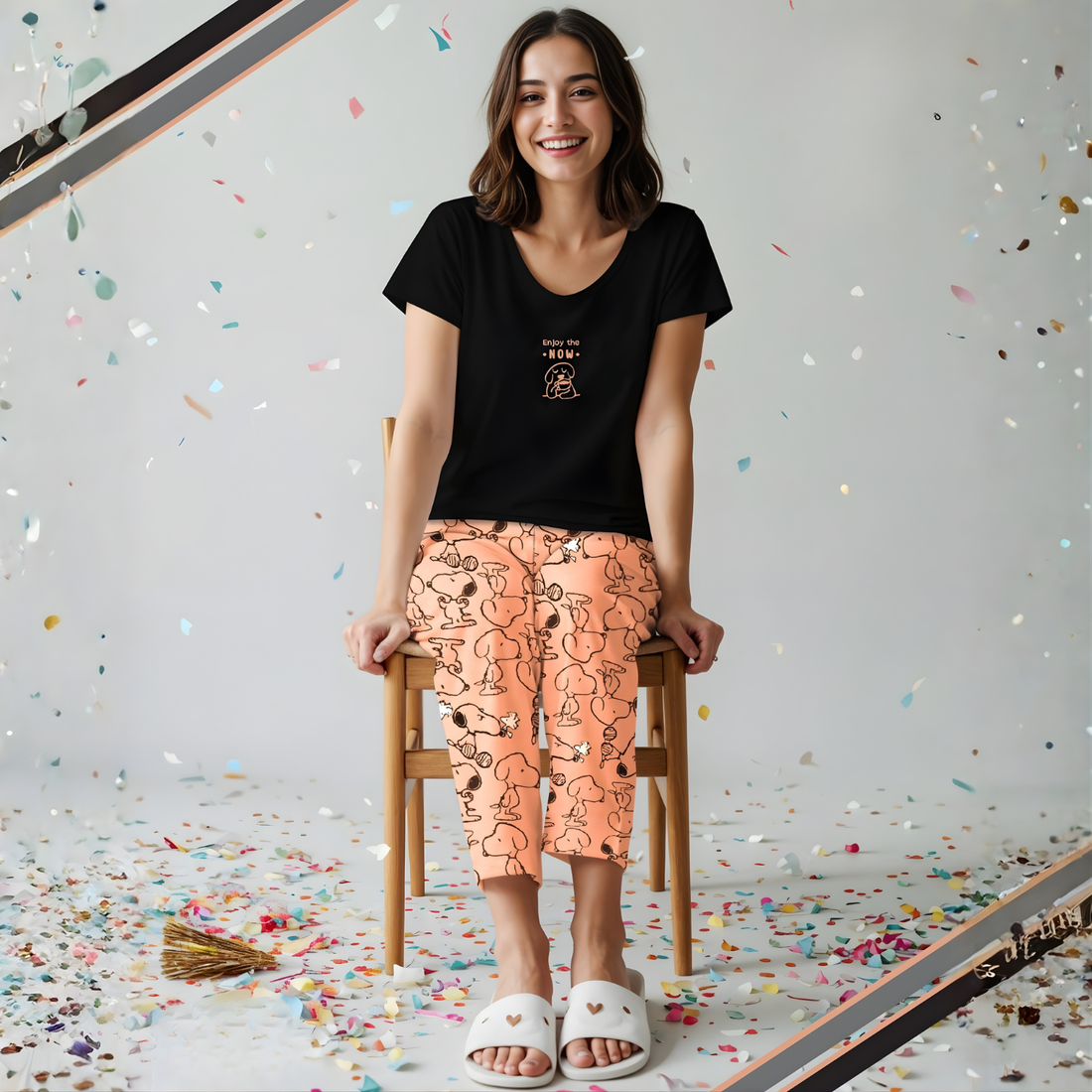 Comfortable black nightsuit with round neckline and half sleeves. Perfect for restful sleep and everyday...