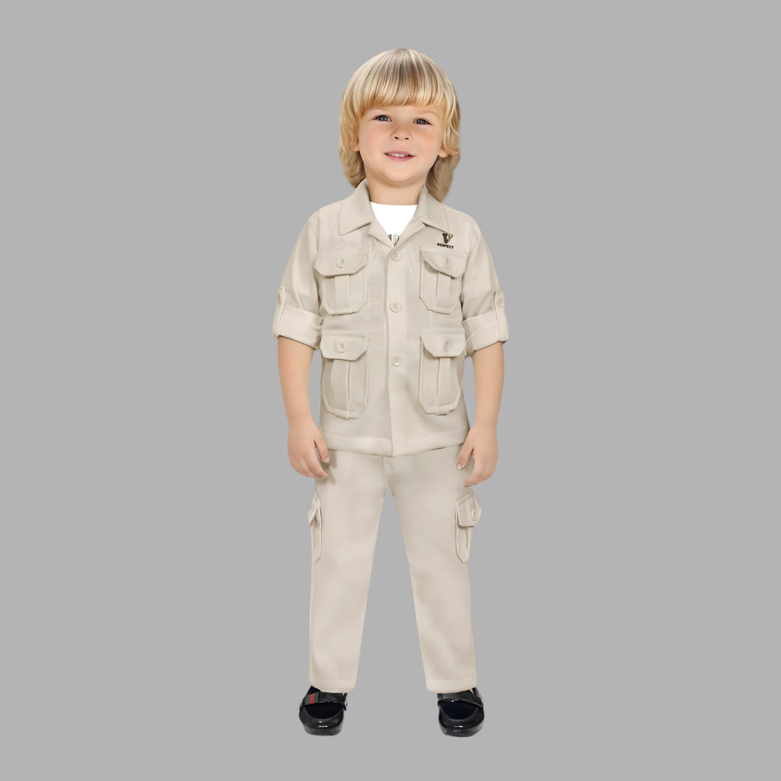 Fawn Stylish Full Suit with Cargo Pants For Boys