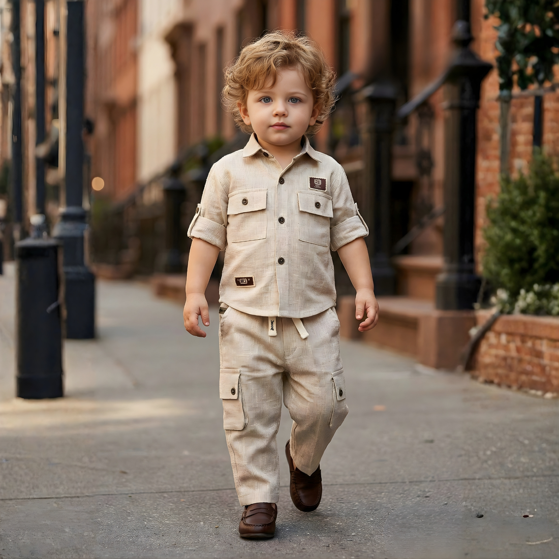Fawn stylish full suit featuring cargo pants for boys. Perfect for casual outings and special...
