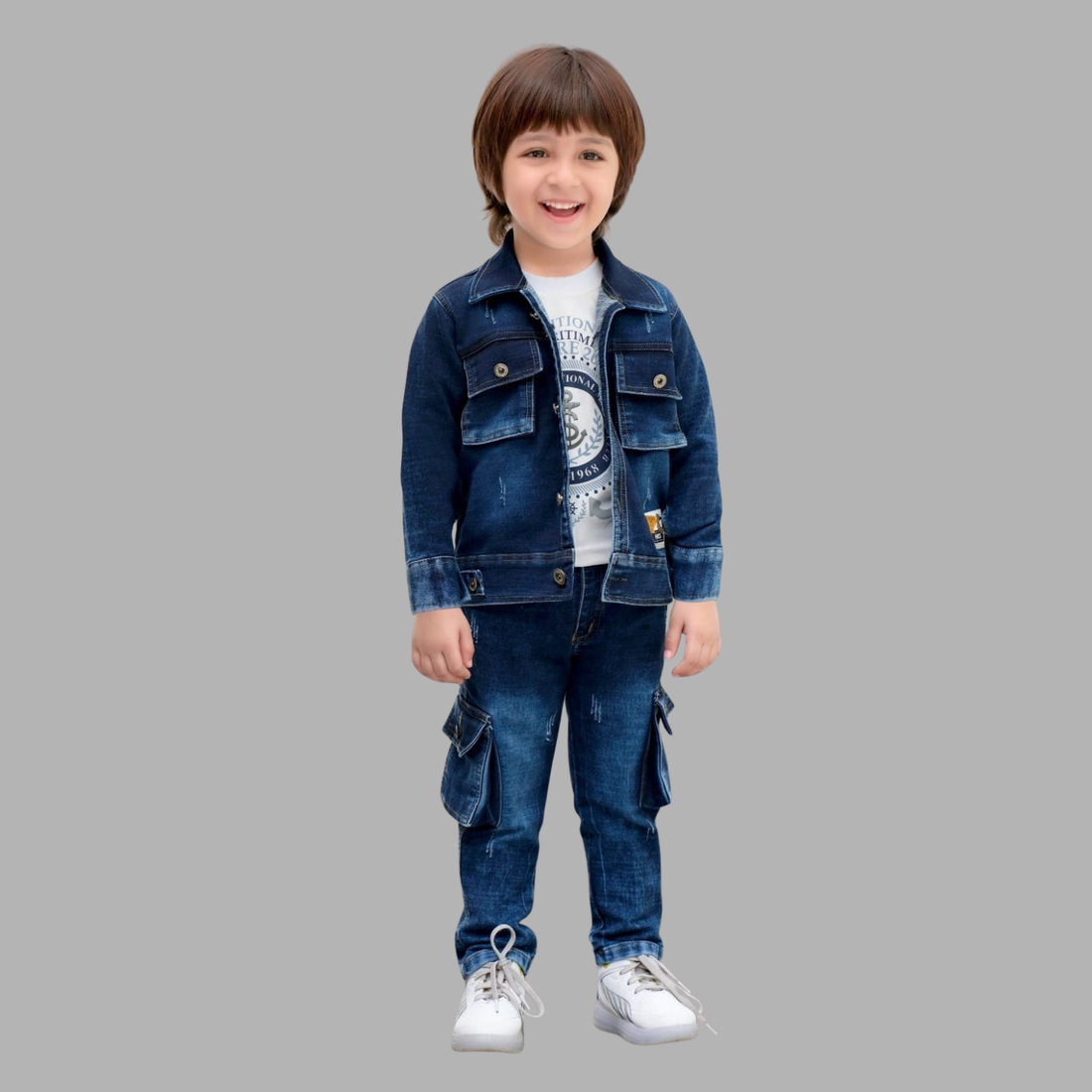 Boys Stylish Cotton Cargo Full Suit with Jacket