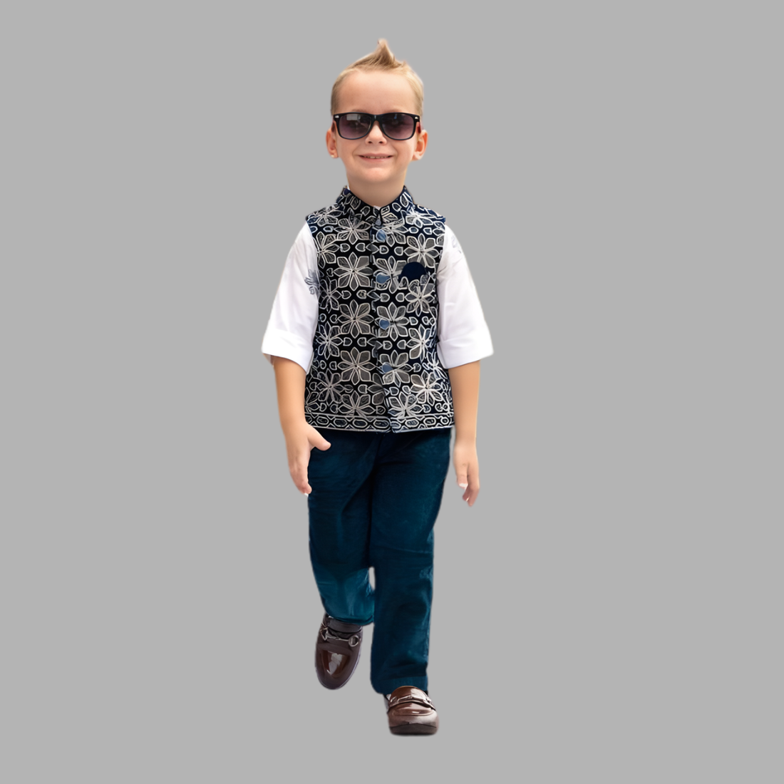 Trendy Three-Piece Boys Set with Jacket, & Shirt Pant