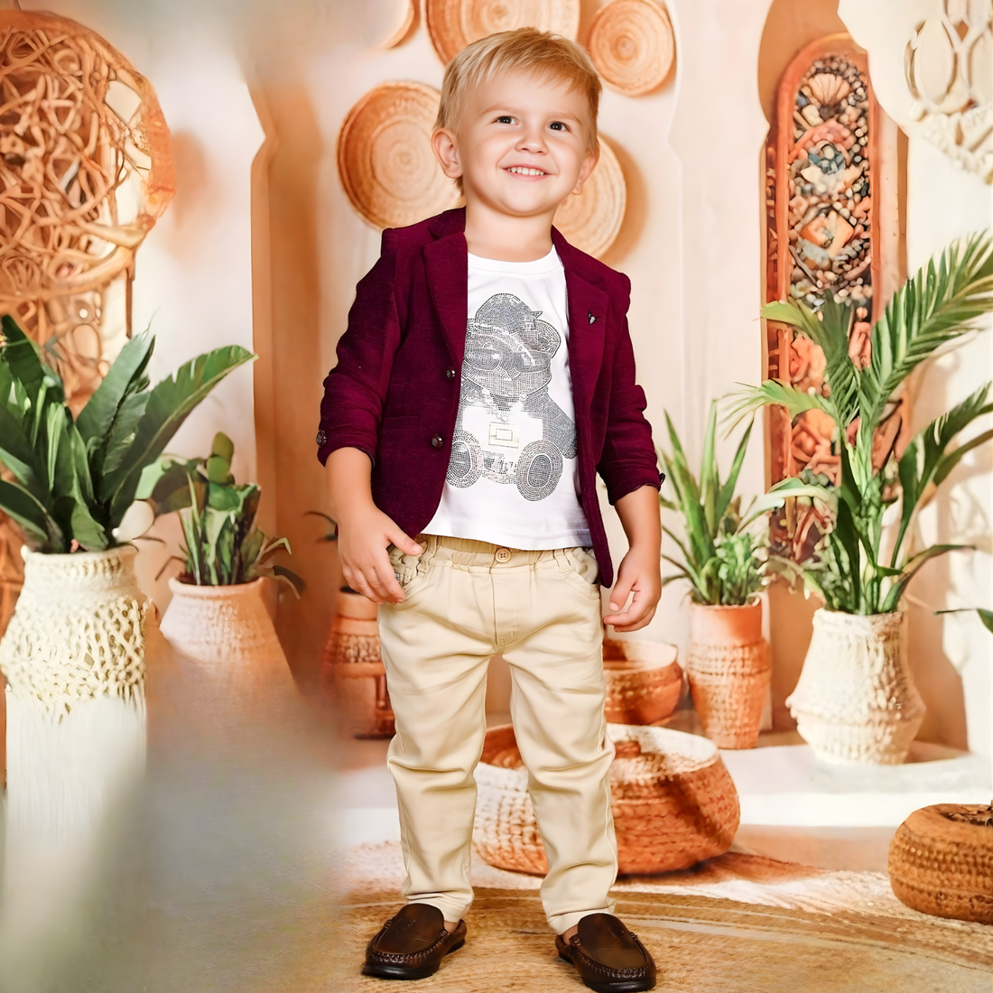 Sophisticated maroon blazer suit for boys. Perfect for parties, weddings, and formal occasions. Premium quality...