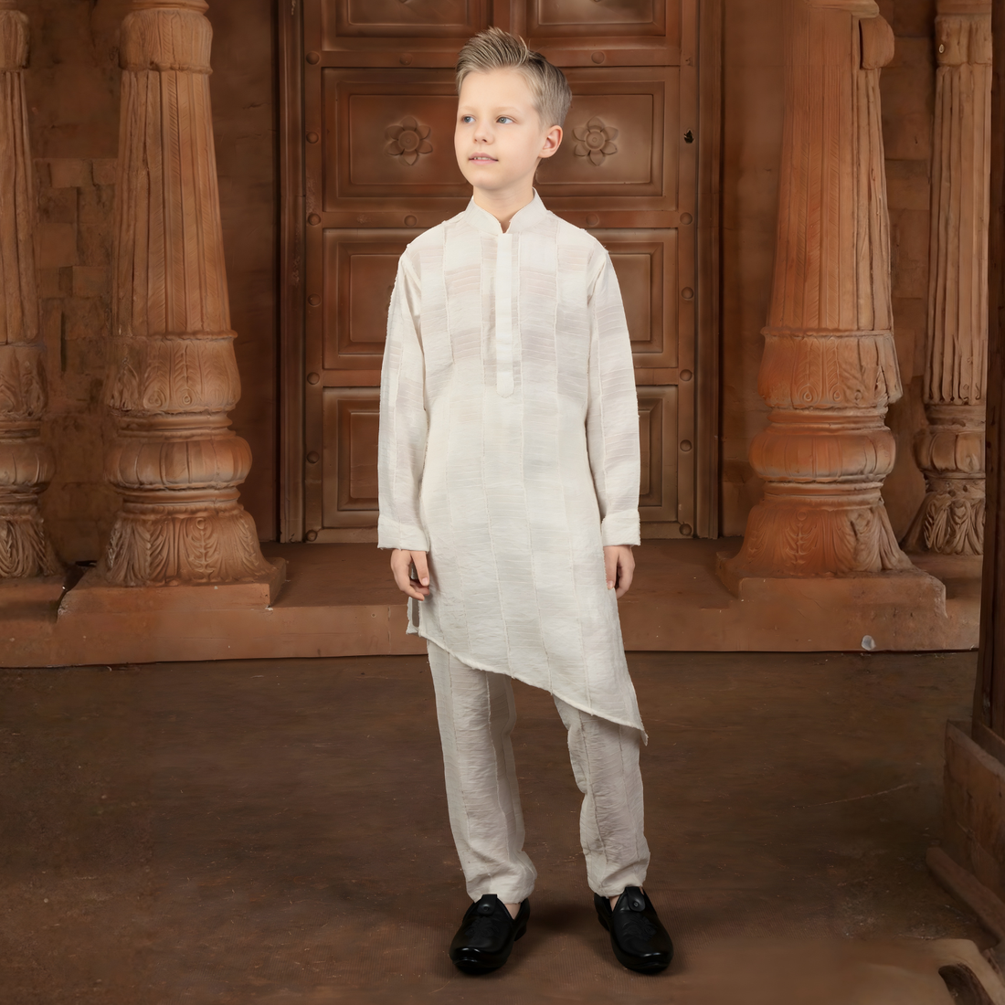 Cream Shining Indo Western For Boys
