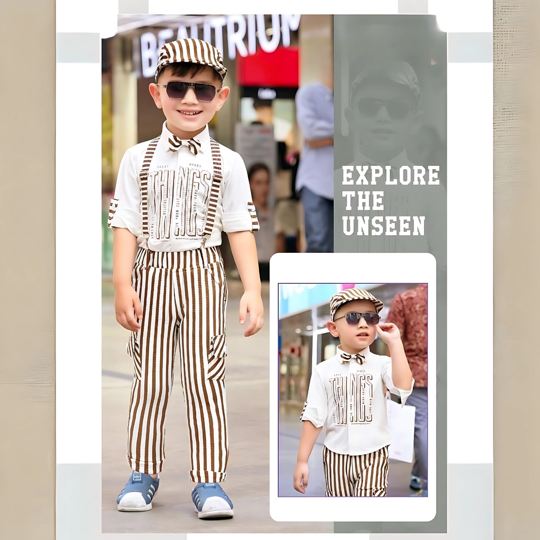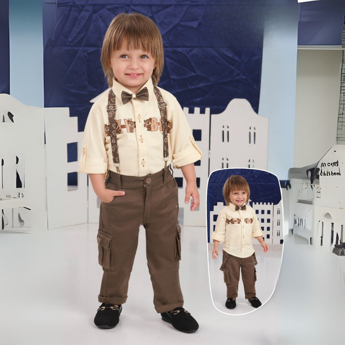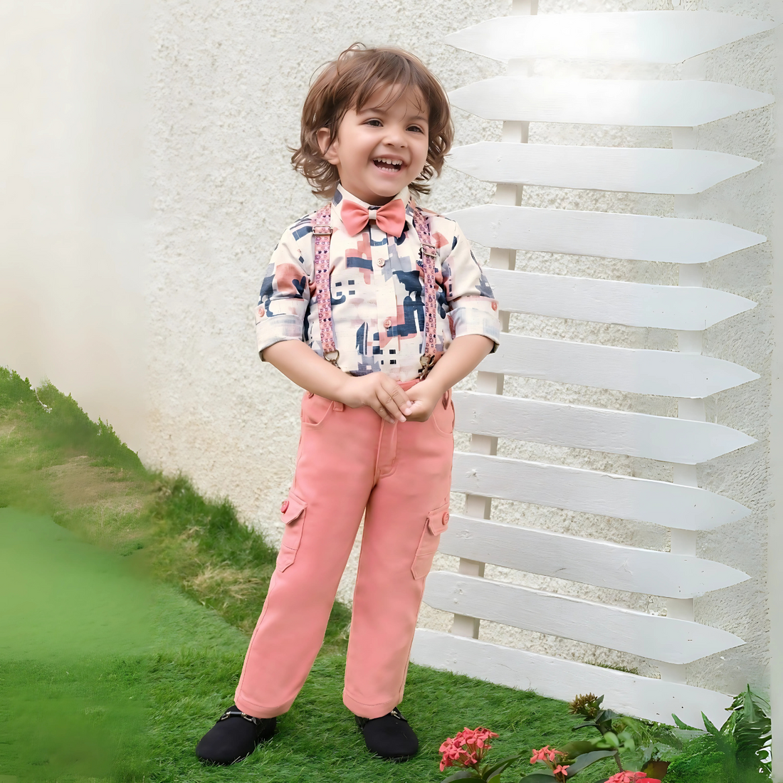 Exclusive kids Party Wear Shirt, Pant With Suspenders And Bow