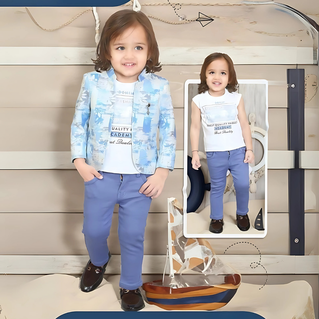 Boys Full Sleeve Denim Jacket, T/Shirt & Pant Set