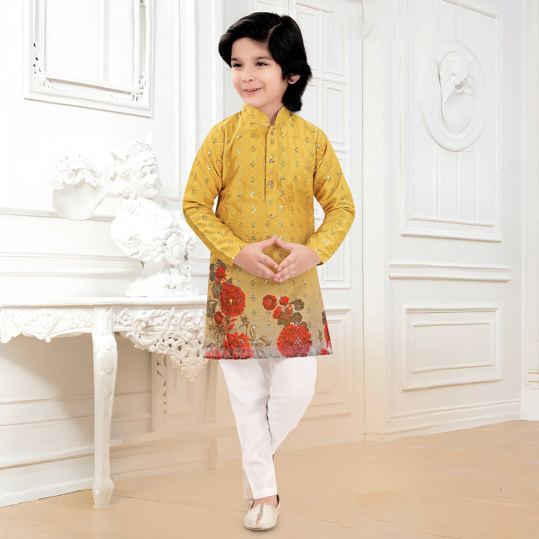 This boys kurta pajama is the perfect blend of traditional design and modern comfort. Made...