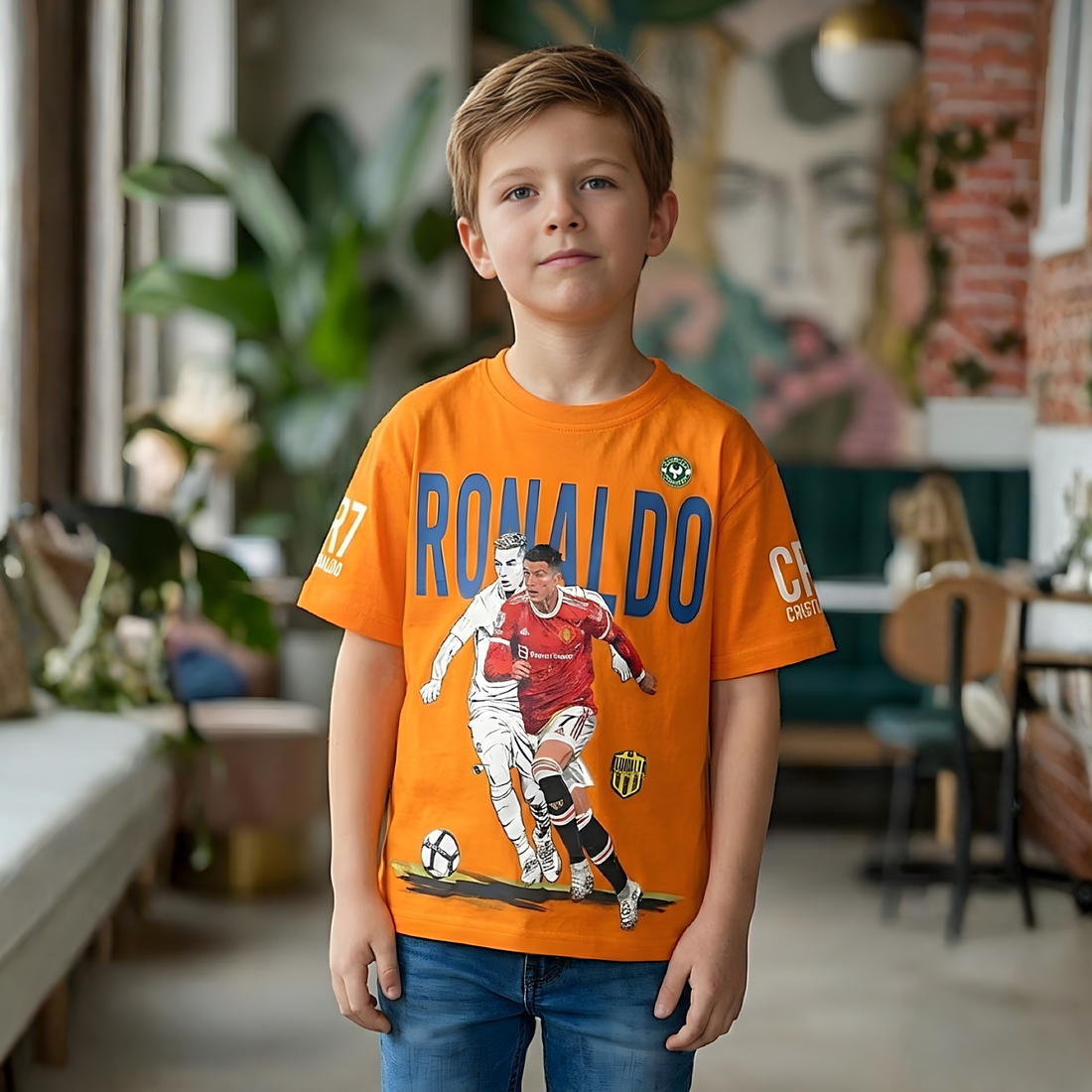 Comfortable cotton t-shirt for boys featuring a classic round neck design. Perfect for everyday wear...