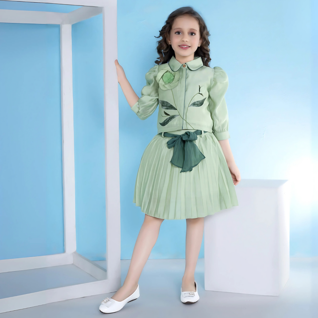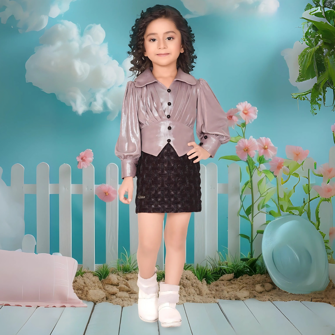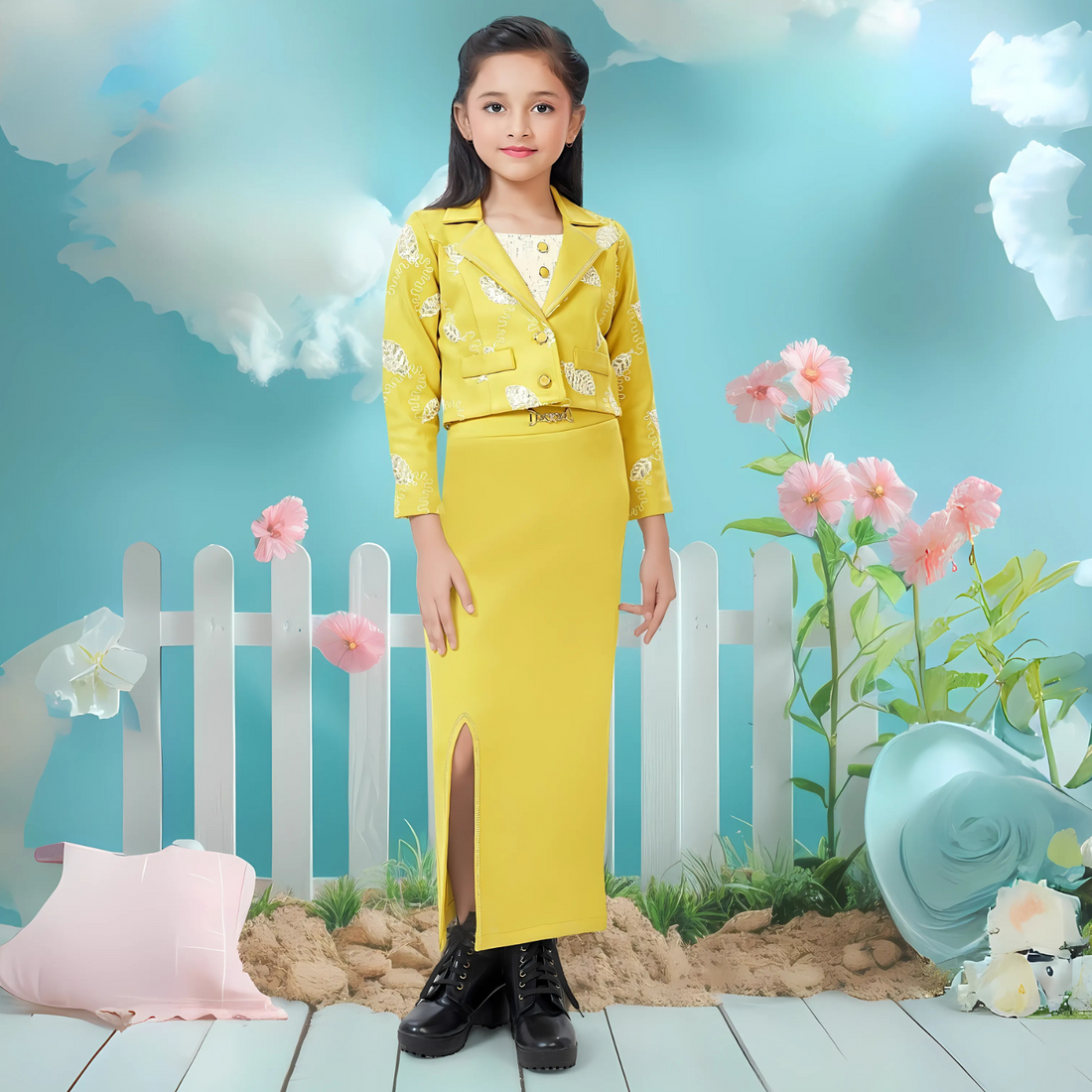 Elevate her wardrobe with this Girls Stylish Long Skirt Top with Jacket set, combining classic...