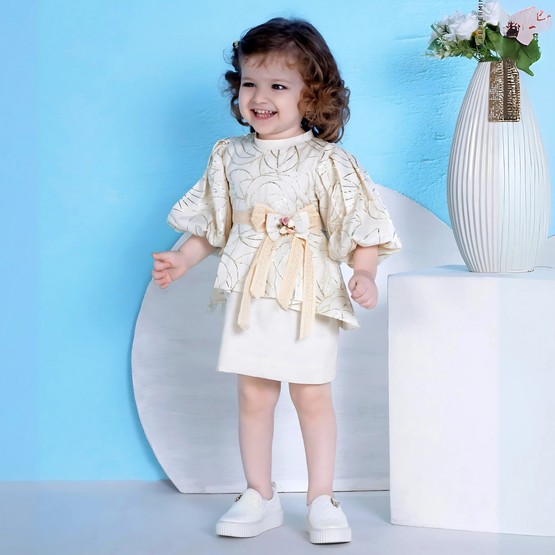 This beige short frock features a vibrant digital print, combining style and comfort perfectly for...