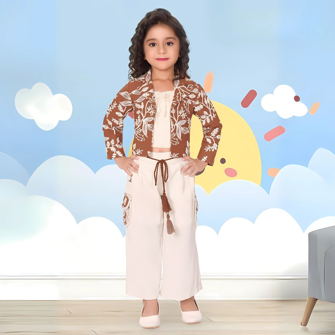 This Girls Pink Stylish Floral Printed Palazzo Set combines breathable fabric with a vibrant floral...