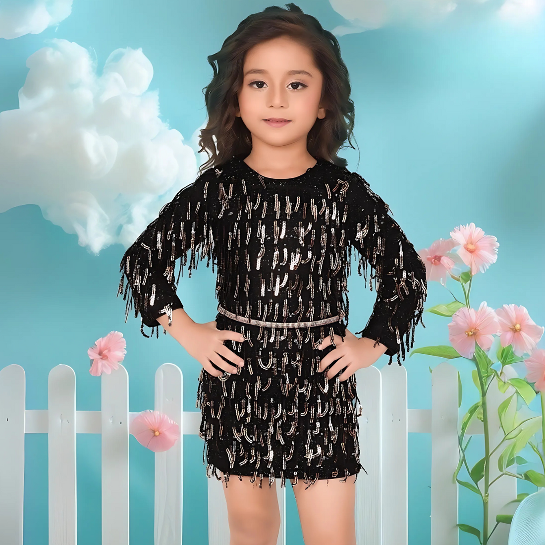 This girls' Black knee-length western frock combines elegant design with comfortable wearability. Its fit and...