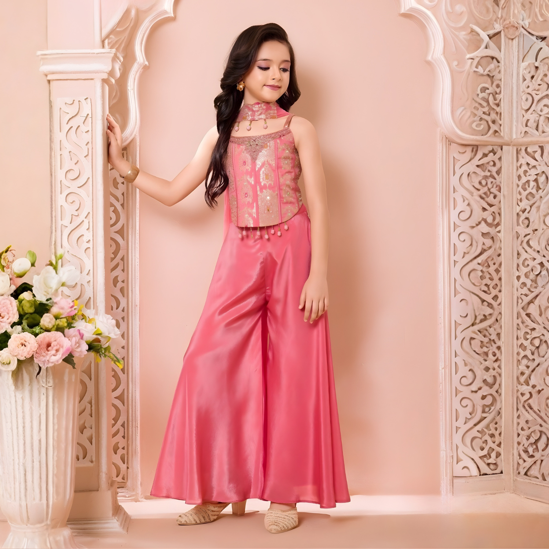 Elegant pink palazzo set perfect for girls' parties. Stylish design combines comfort with sophistication for...