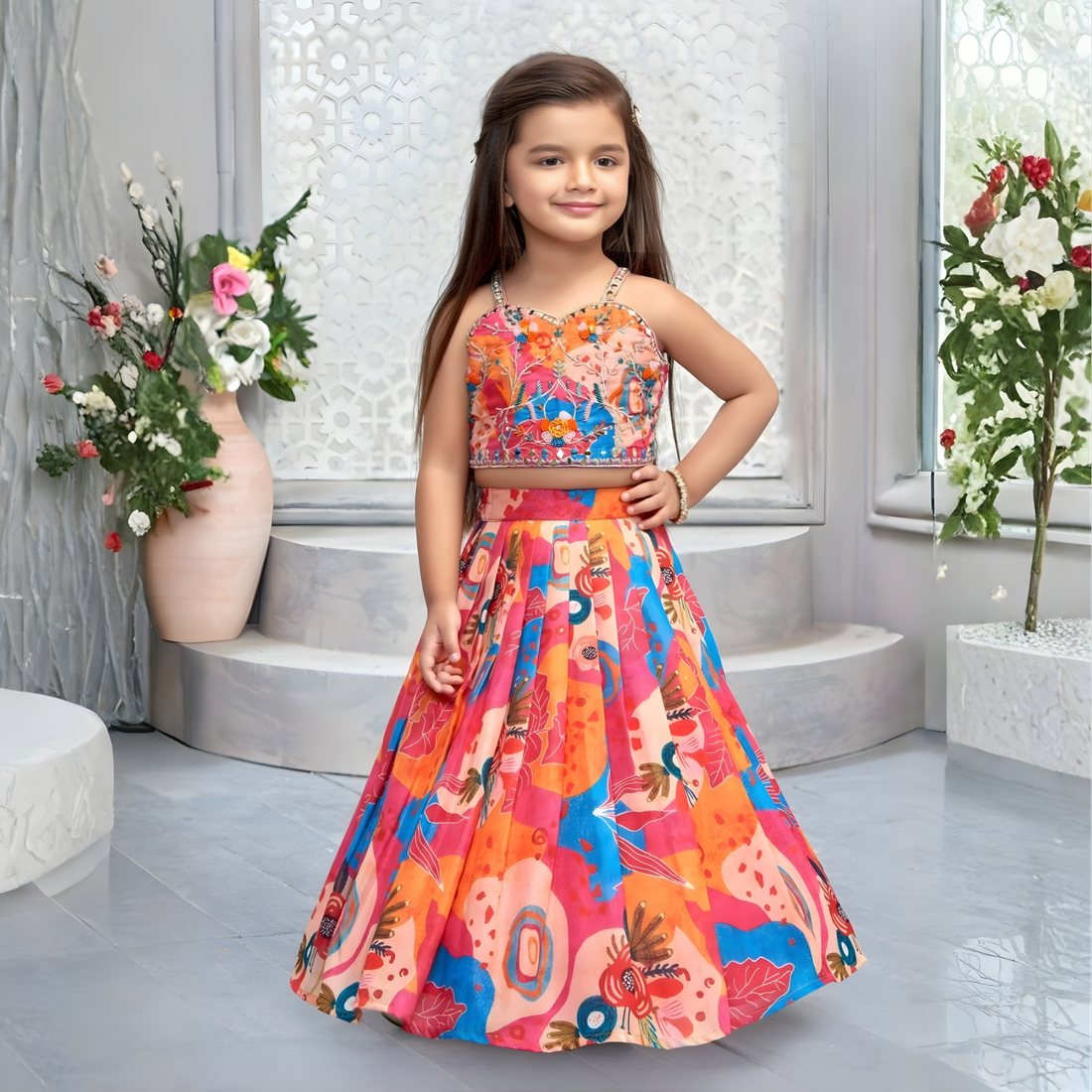 Girls Embroidered Ready to Wear Lehenga & Choli