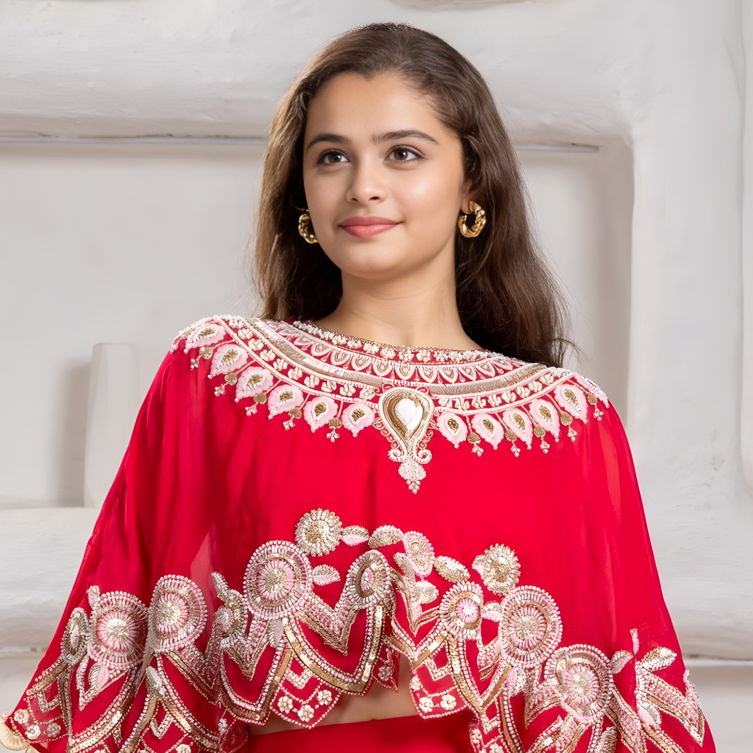 Elegant Rani georgette bridal lehenga choli adorned with intricate thread embroidery. Perfect for traditional celebrations and weddings.