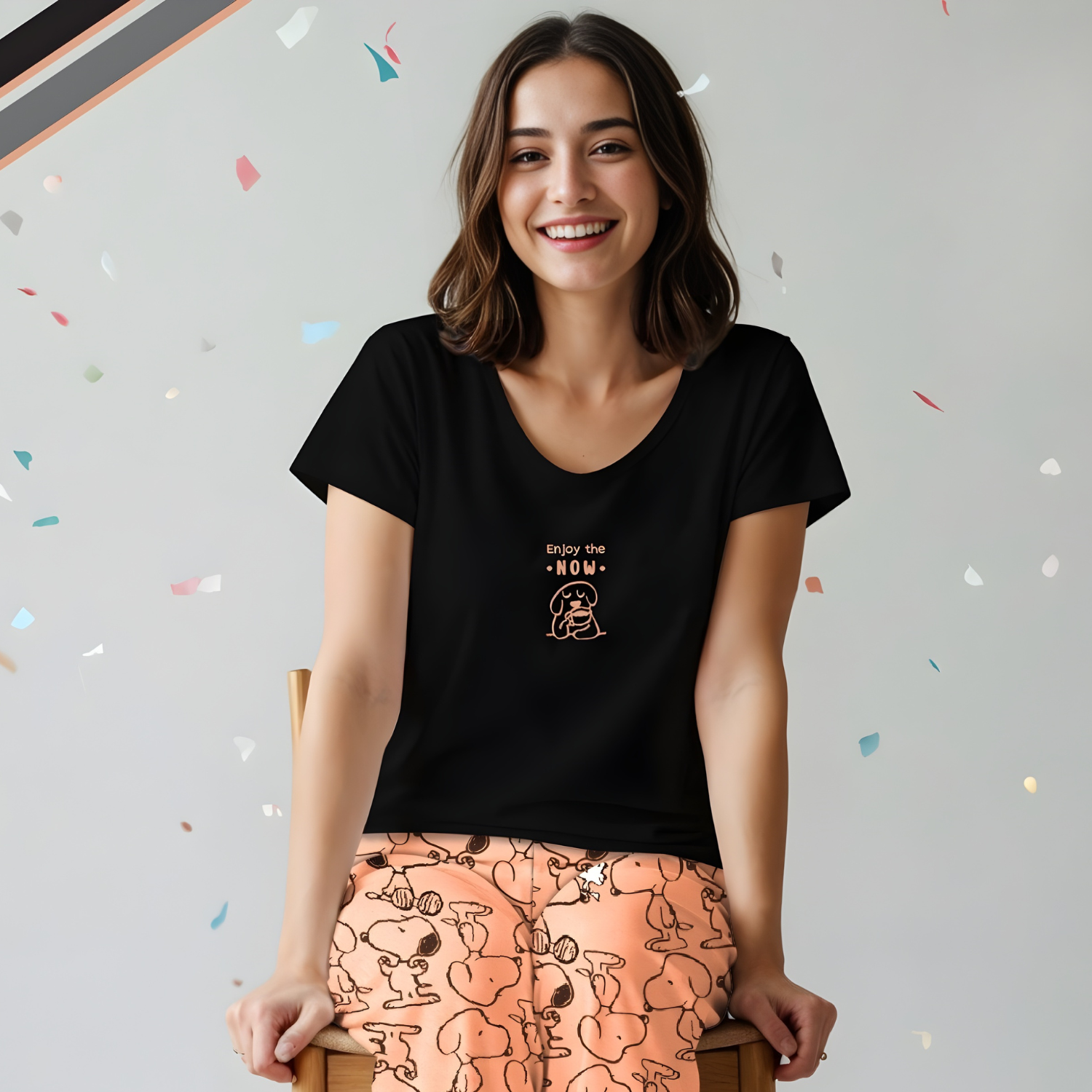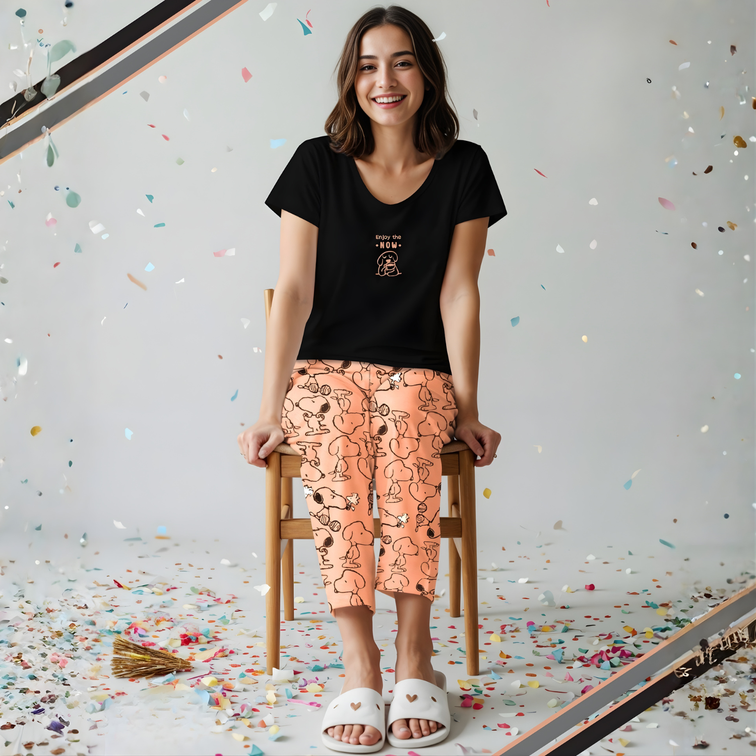 Comfortable black nightsuit with round neckline and half sleeves. Perfect for restful sleep and everyday loungewear wear.