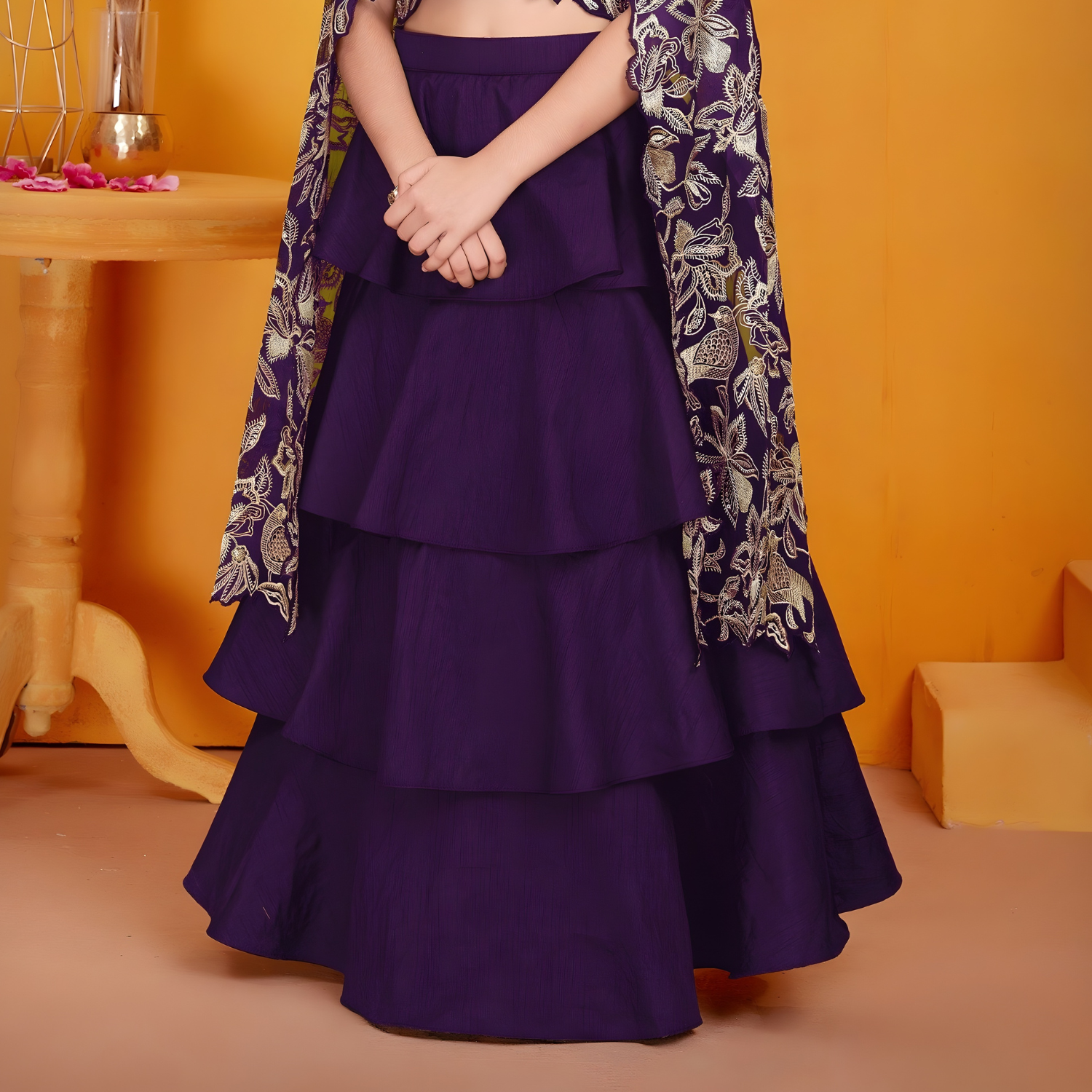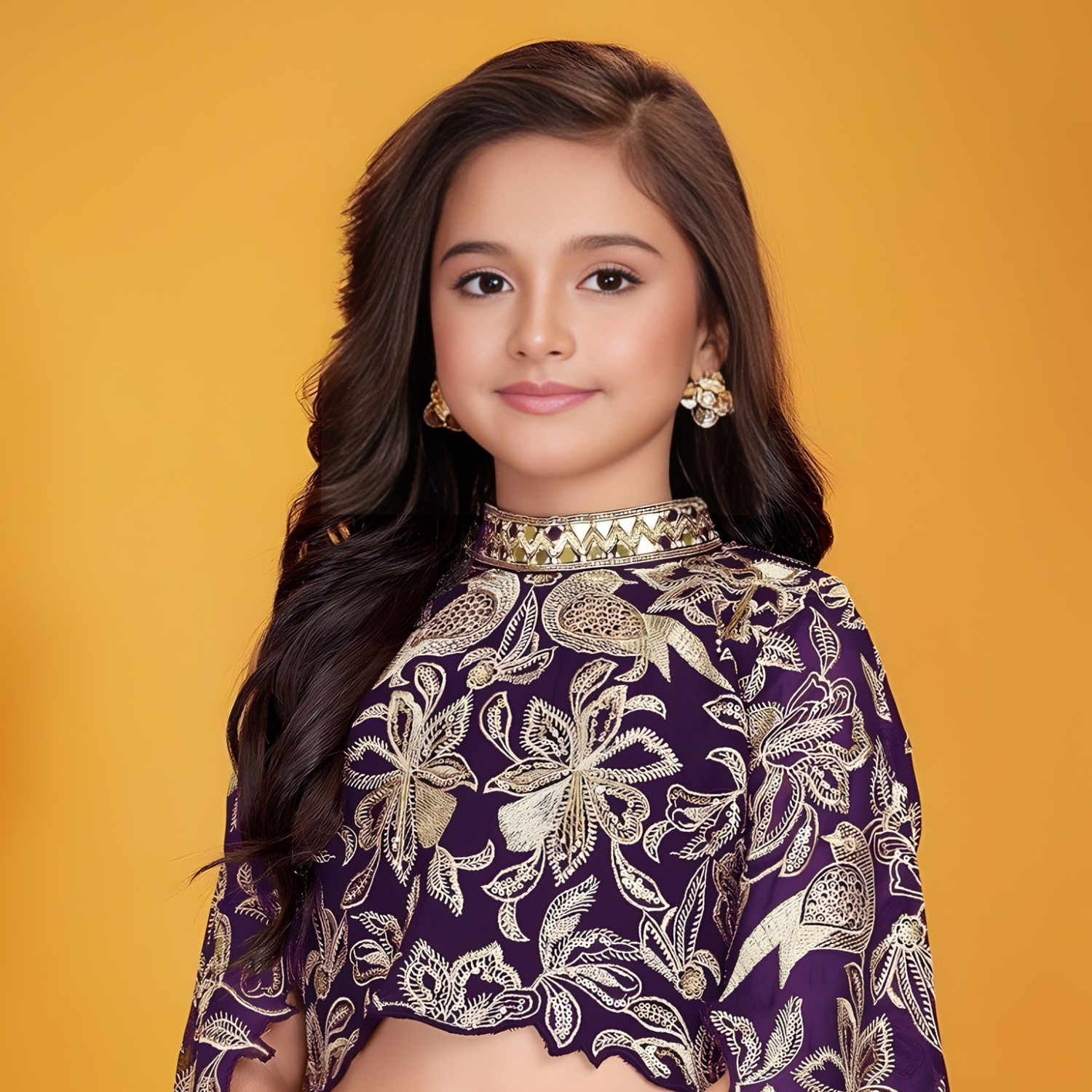 This Wine Zari work Lehenga Choli for girls features exquisite handwoven zari embroidery on a deep Wine fabric, combining traditional artistry with a contemporary fit. Designed for both comfort and elegance, it enhances festive and special occasion.