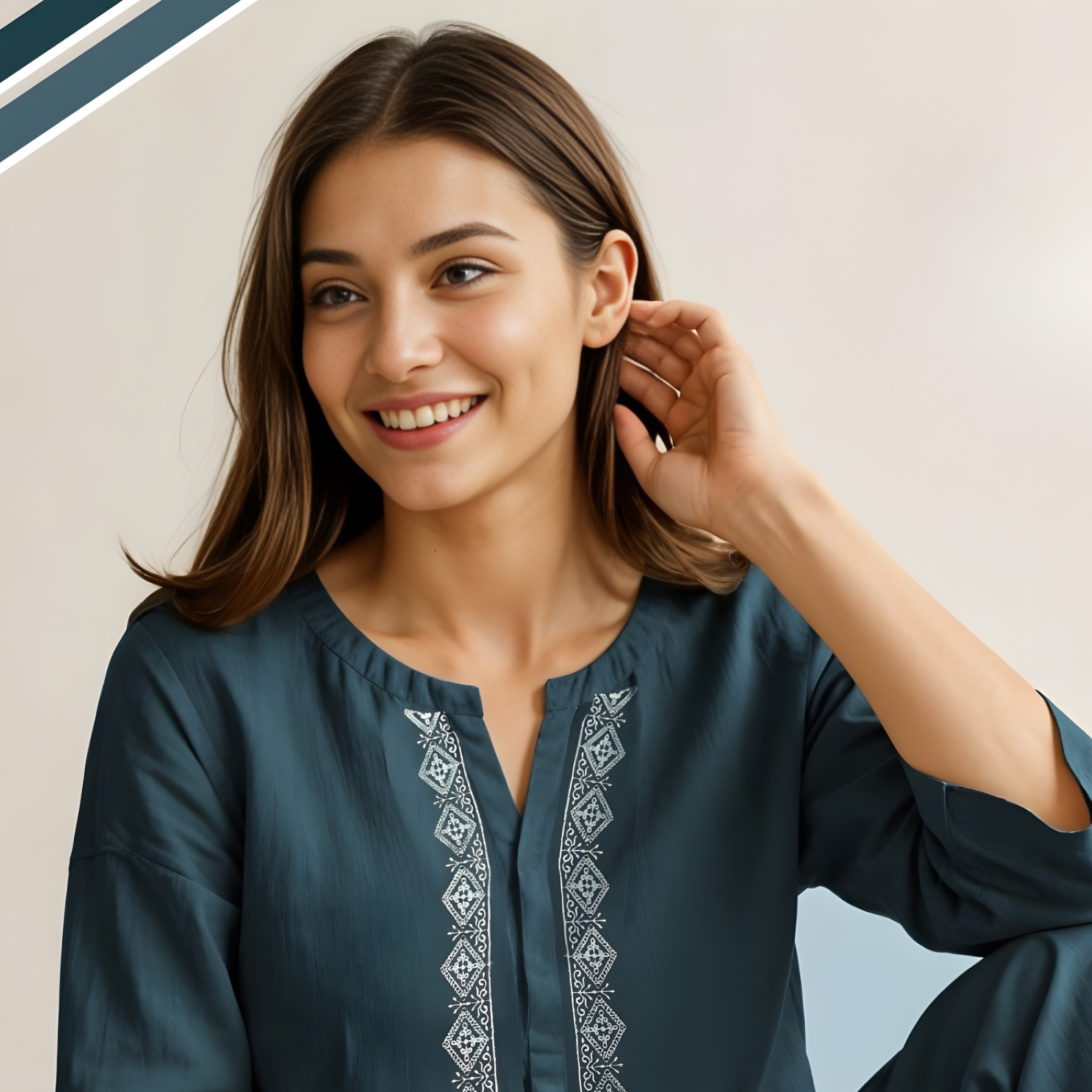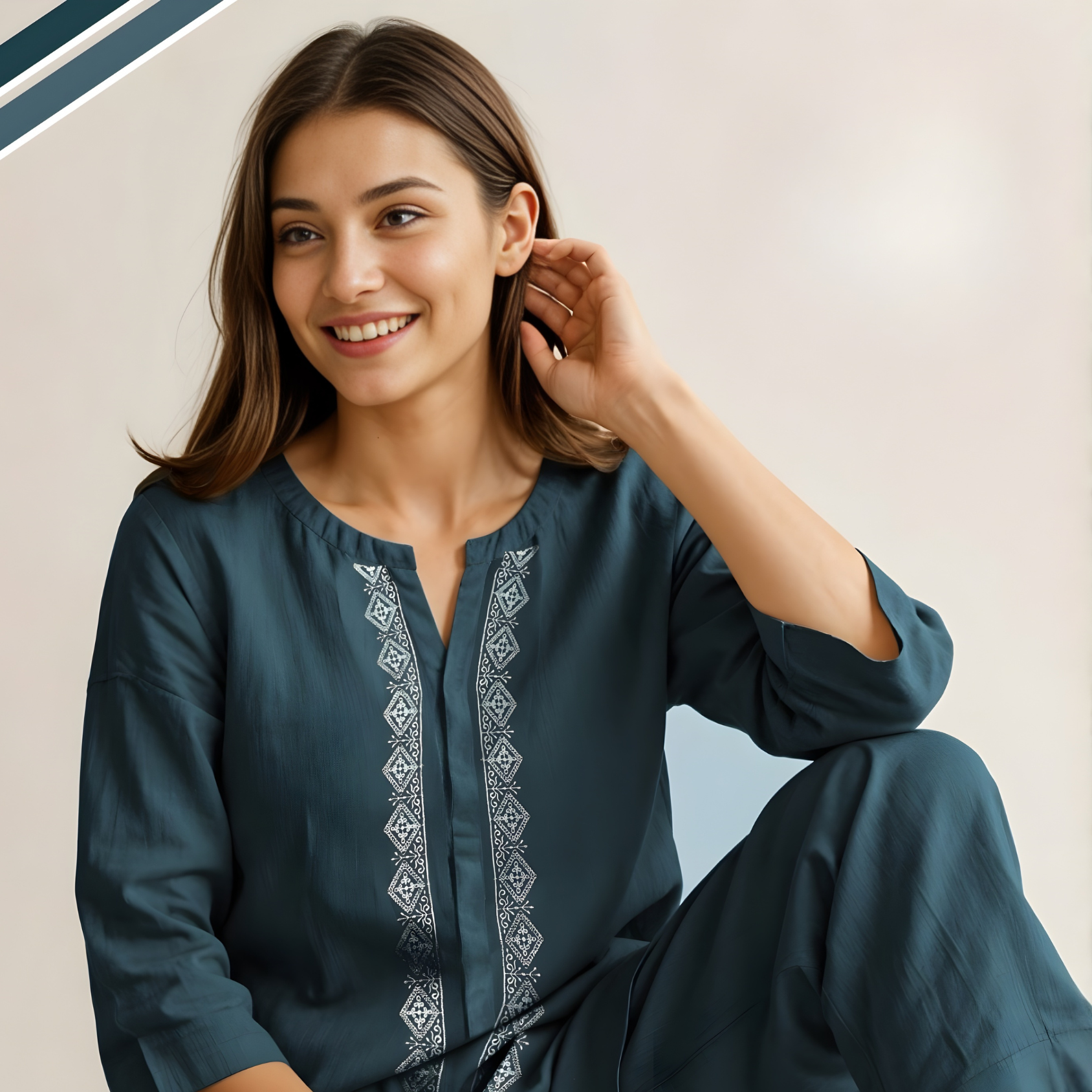 Breathable cotton co-ord set in serene blue with delicate floral print. Straight silhouette offers timeless elegance and effortless versatility for any occasion.
