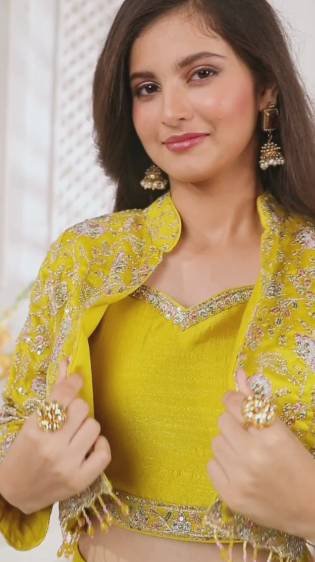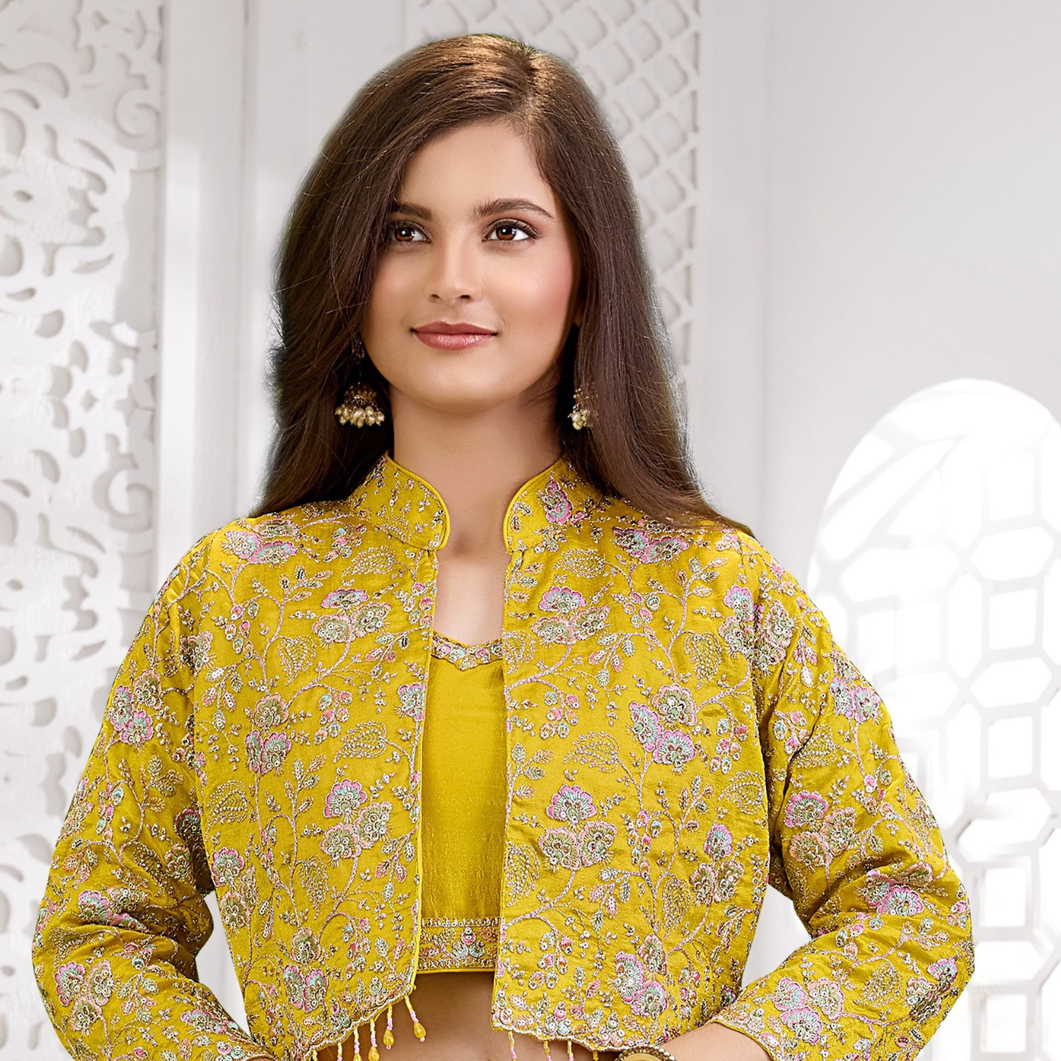 Yellow Embroidered Indo-Western Silk Palazzo Set
