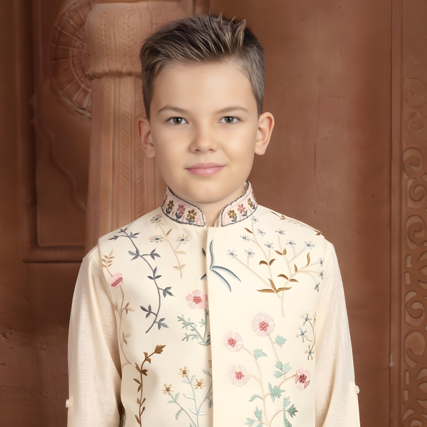 Elegant Cream kurta pajama set for boys. Perfect for weddings and festive occasions. Traditional Indian ethnic wear with premium quality fabric and impeccable tailoring.
