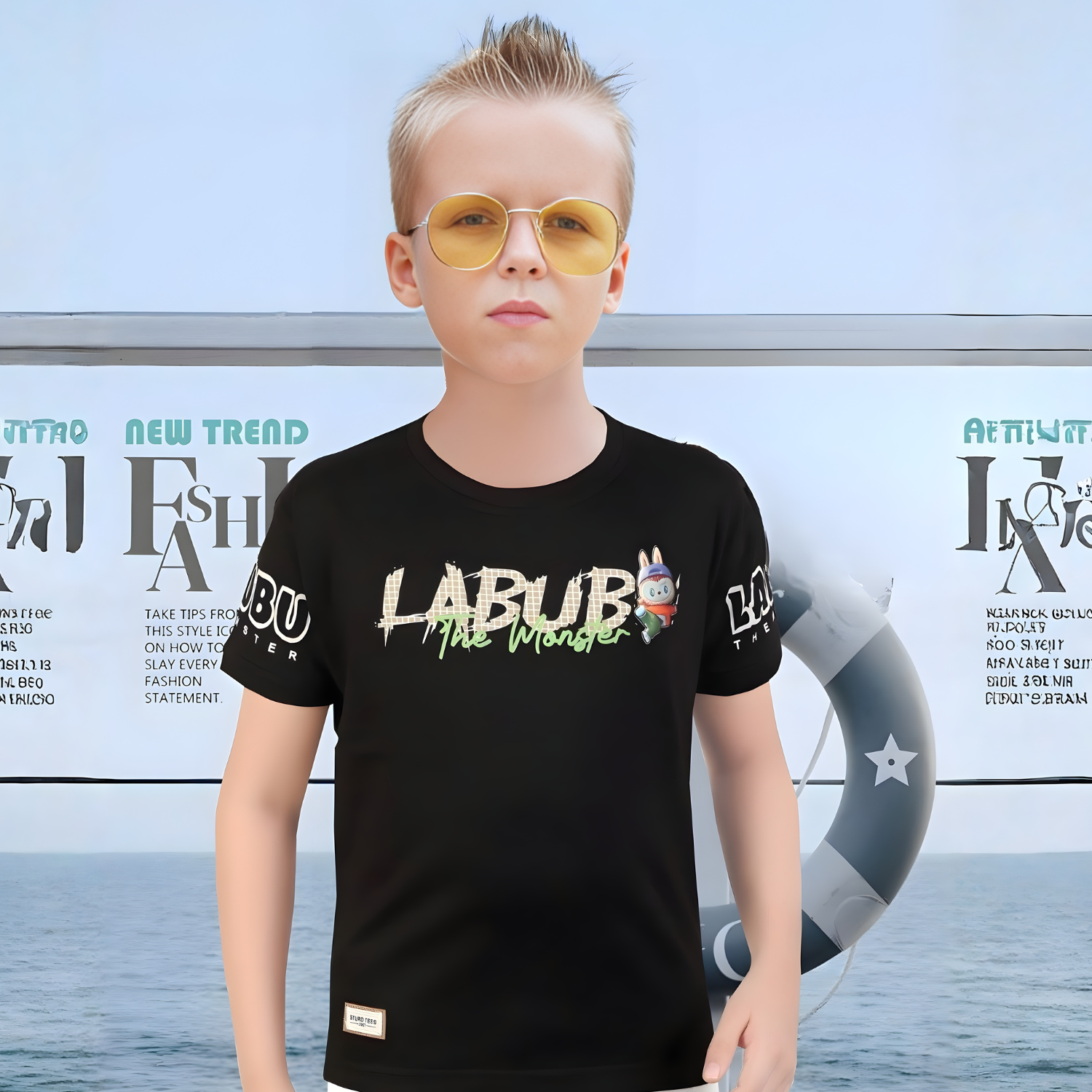 Designed for comfort and durability, this boys' Black round neck half sleeve t-shirt features breathable fabric ideal for active wear. Its classic fit ensures ease of movement and everyday versatility.