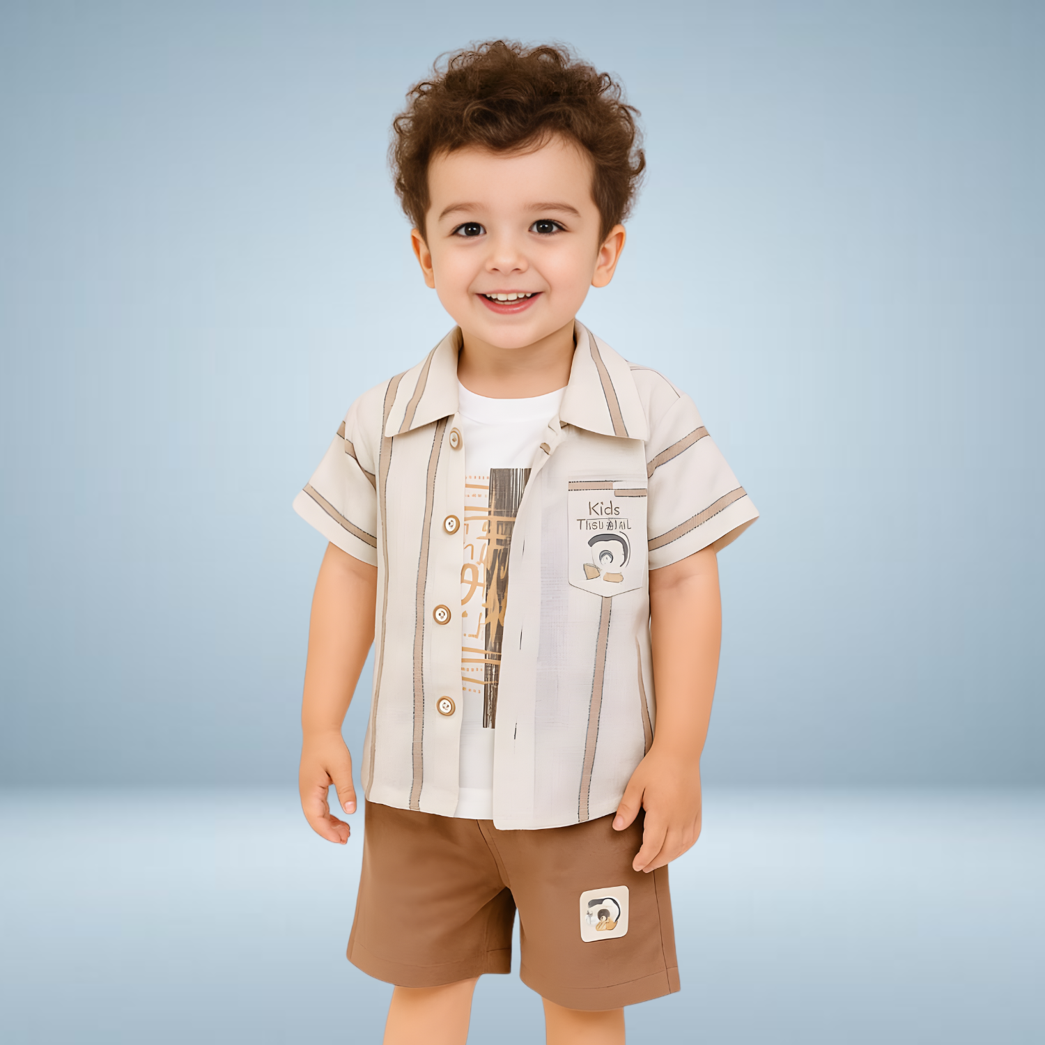 Boys Brown Stylish Printed Cord Set