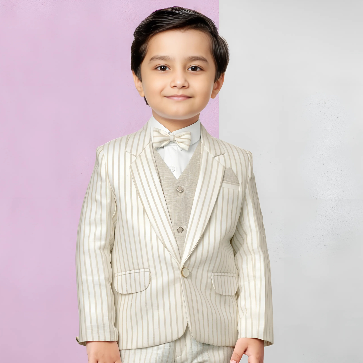 Elevate your young gentleman's style with this Boys Cream Party Coat Suit, tailored for comfort and sophistication. Perfect for special occasions, it combines classic design with a modern fit to ensure a polished, confident look.