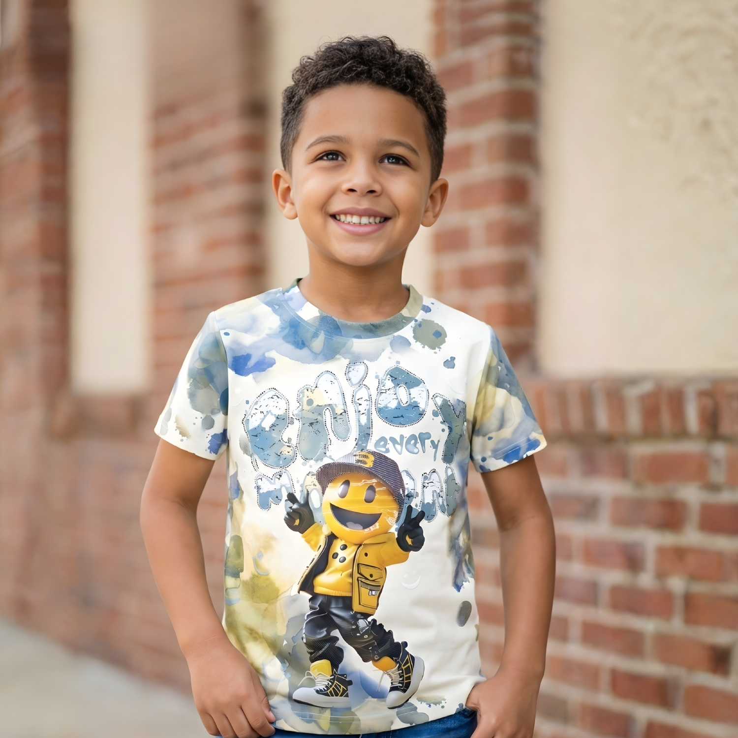 Stylish printed round neck t-shirt for boys featuring half sleeves. Breathable, durable fabric ensures comfort and longevity through active wear.