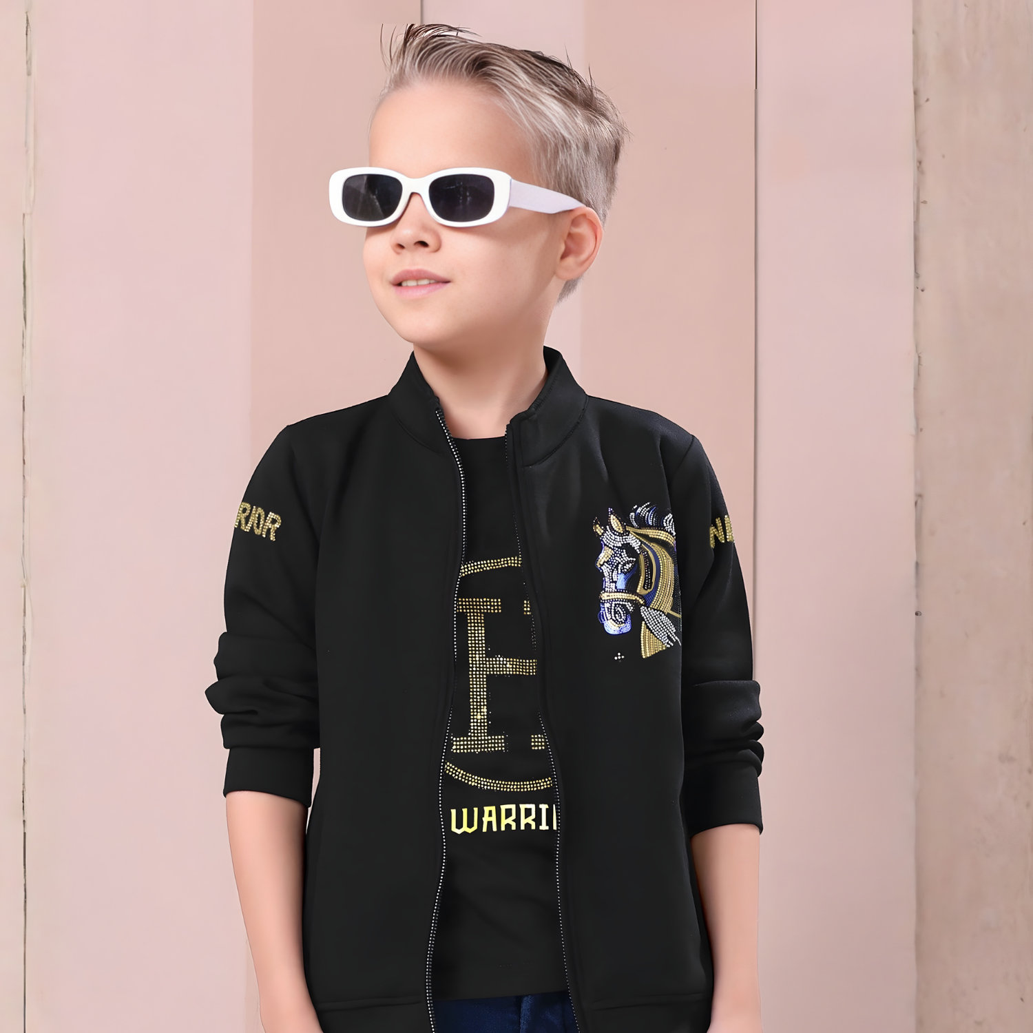 This Boys Trendy Party Wear Jacket and T-Shirt combo combines contemporary style with comfortable wearability, perfect for festive occasions.