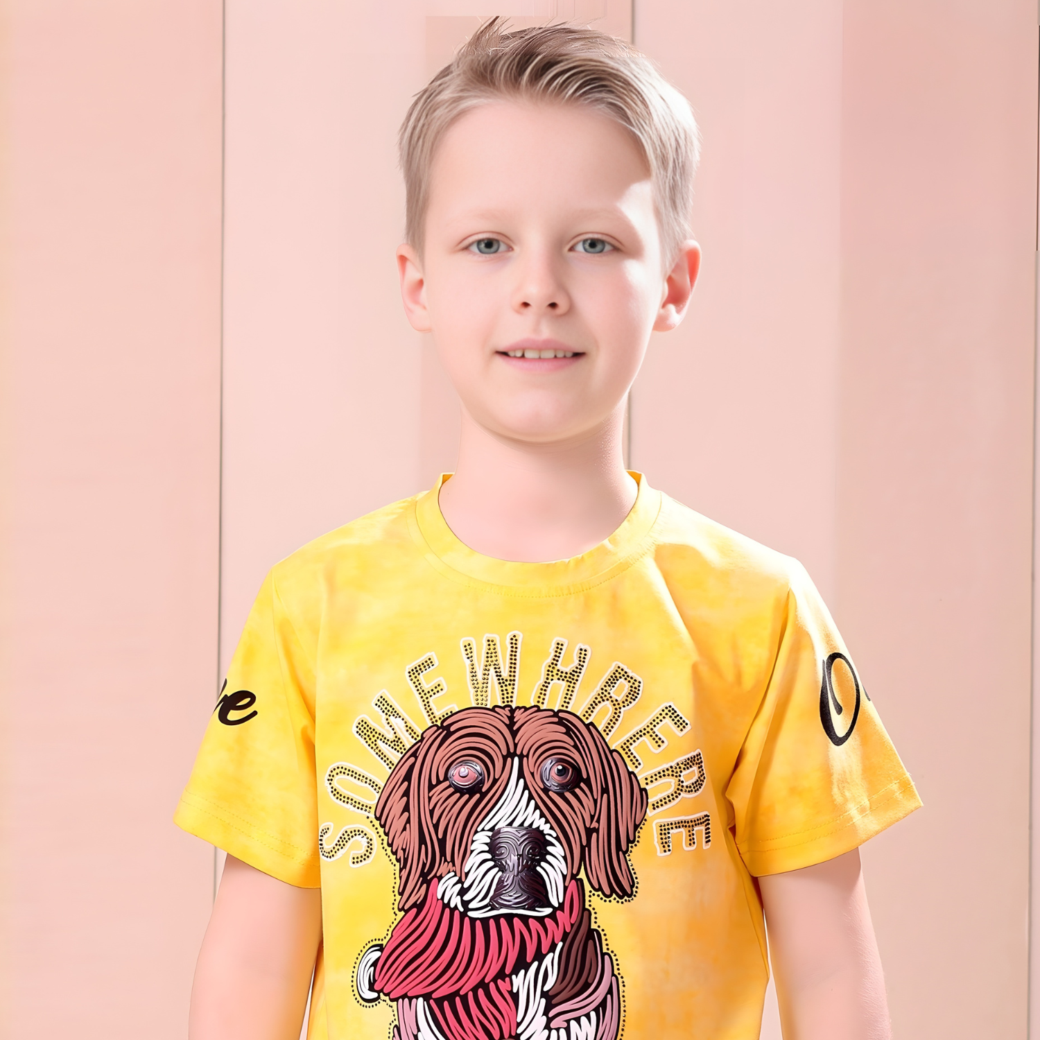 Boys Yellow Round Neck T-Shirt Soft, breathable blue round neck t-shirt built for comfort and durability. Perfect for everyday wear and active play with timeless style.