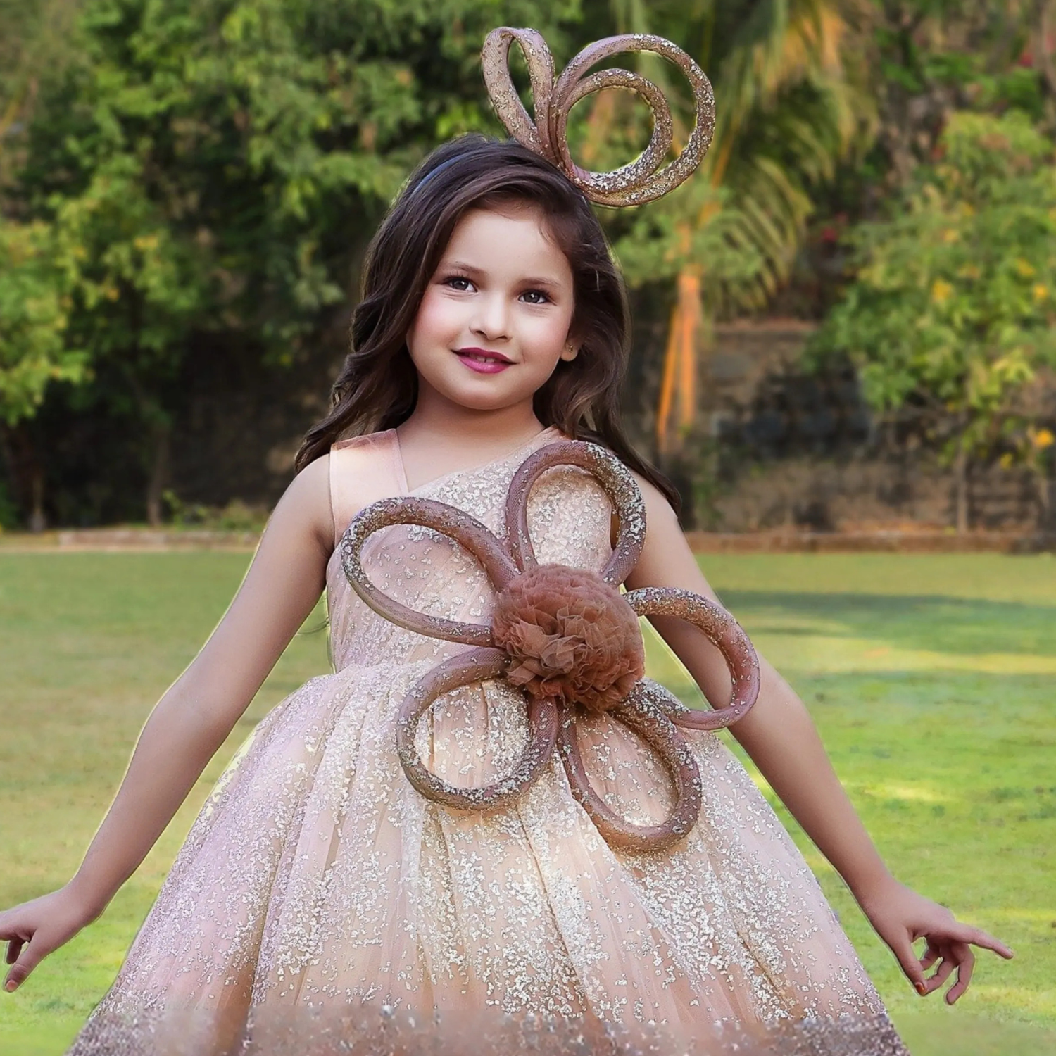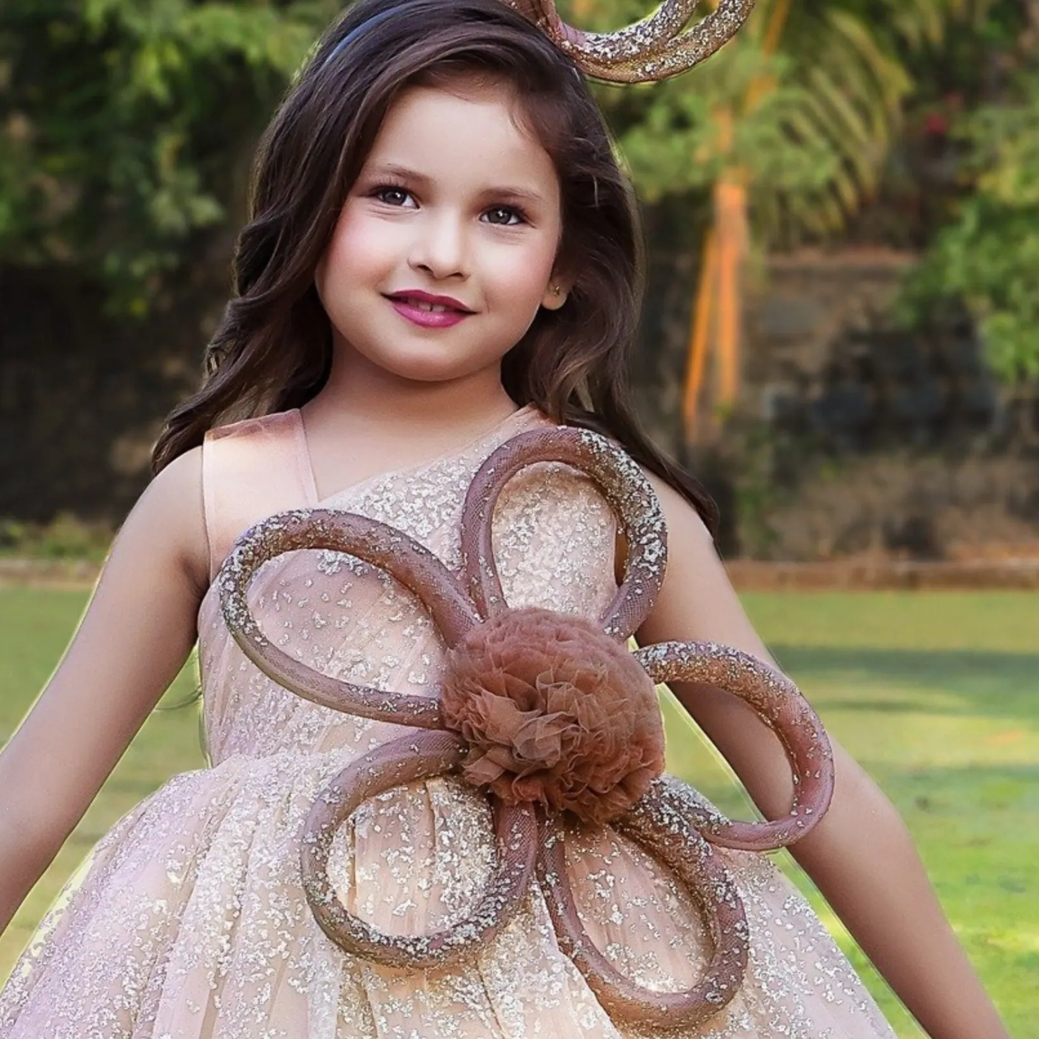 Graceful and glam, this coffee colored shaded gown in flowy georgette features intricate zari weaving for a rich, festive look. Designed sleeveless for ease and elegance, its the perfect pick for parties, receptions, and special celebrations where standout style is a must.