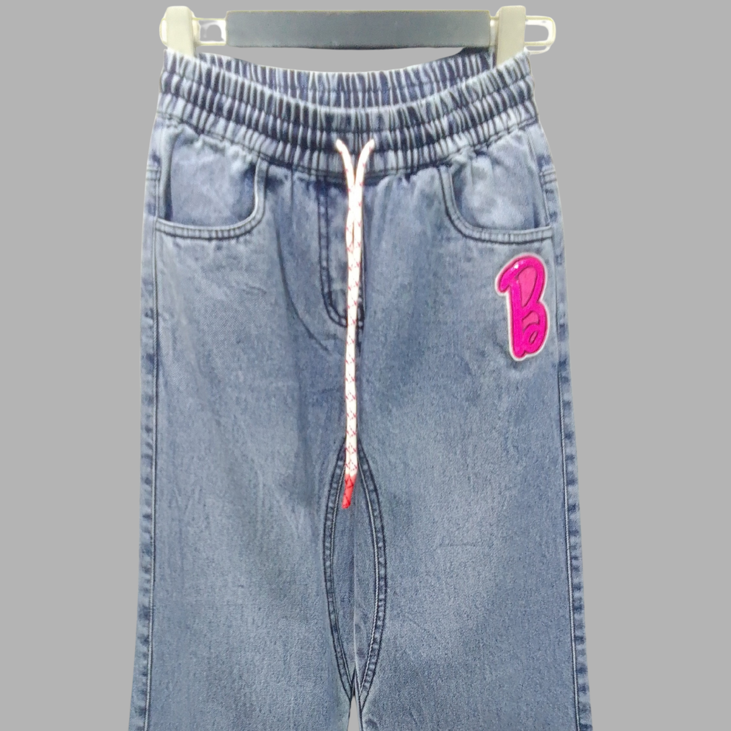 Girls Barbie Light Blue Denim Pant Stylish light blue denim pants featuring iconic Barbie branding. Perfect for young fashion enthusiasts who love trendy, comfortable everyday wear.