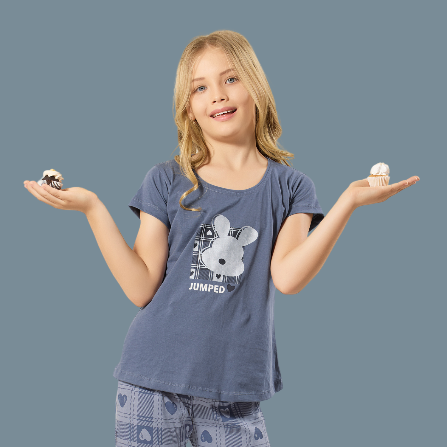 blue printed night suit features a soft, breathable fabric for comfortable sleep and a charming design that adds a playful touch to bedtime. Its relaxed fit ensures ease of movement and all-night comfort.