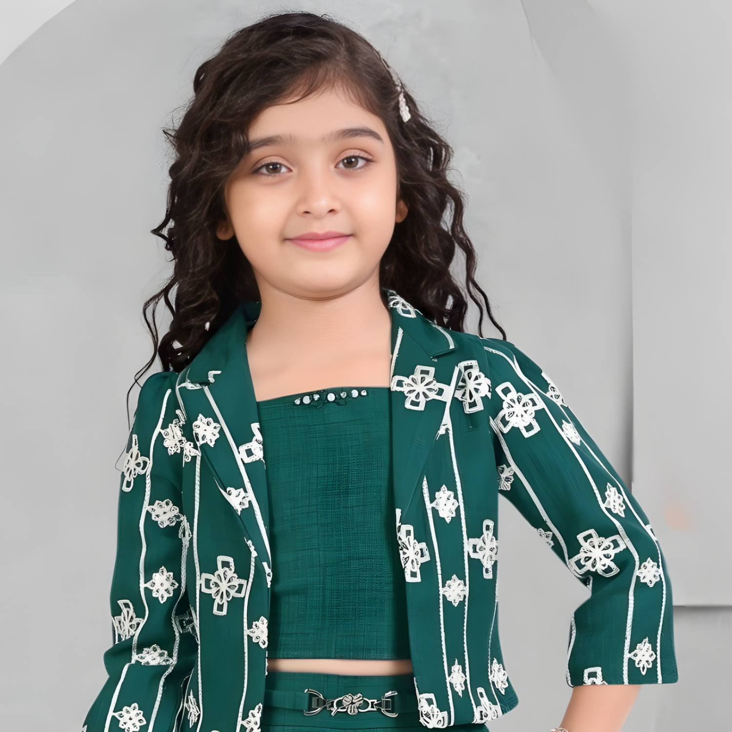 Stylish green western ensemble featuring a coordinated top and palazzo pants. Perfect for parties and special occasions with contemporary flair.