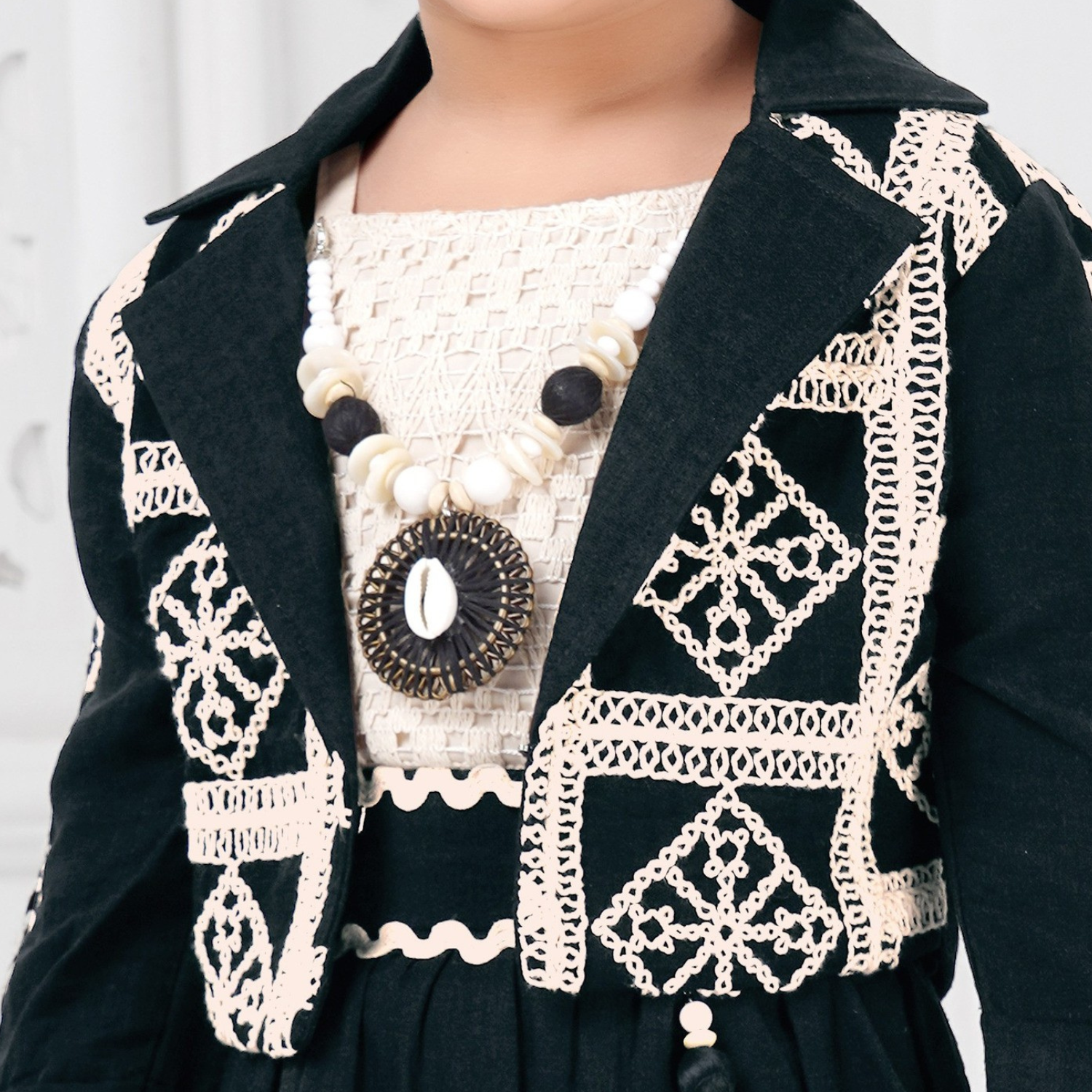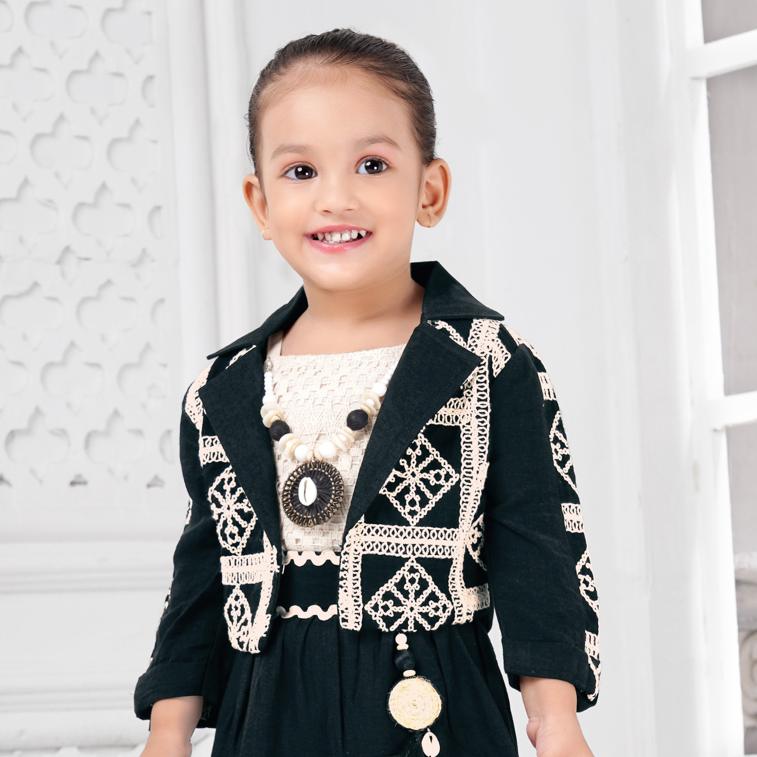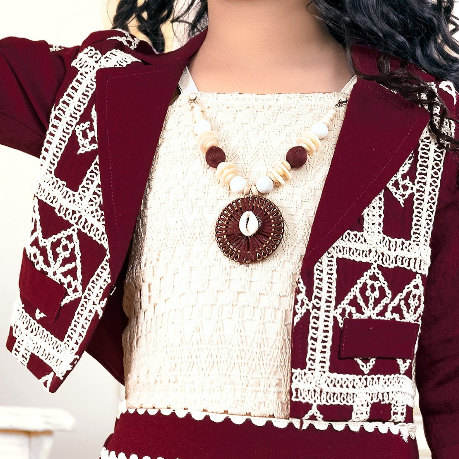 This charming girls' outfit features a graceful long skirt paired with a stylish jacket in soft pastel hues. Crafted from lightweight, breathable fabric, it ensures comfort and ease of movement. Perfect for festive occasions or casual outings, this set combines elegance with practicality for your little one.