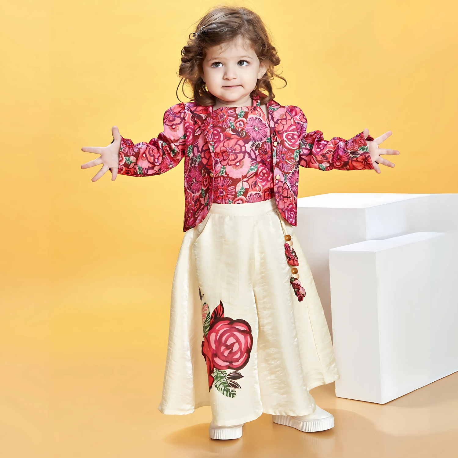 This Girls Pink Stylish Floral Printed Palazzo Set combines breathable fabric with a vibrant floral pattern for all-day comfort and style. Designed for easy movement, it’s perfect for casual outings and special occasions alike.