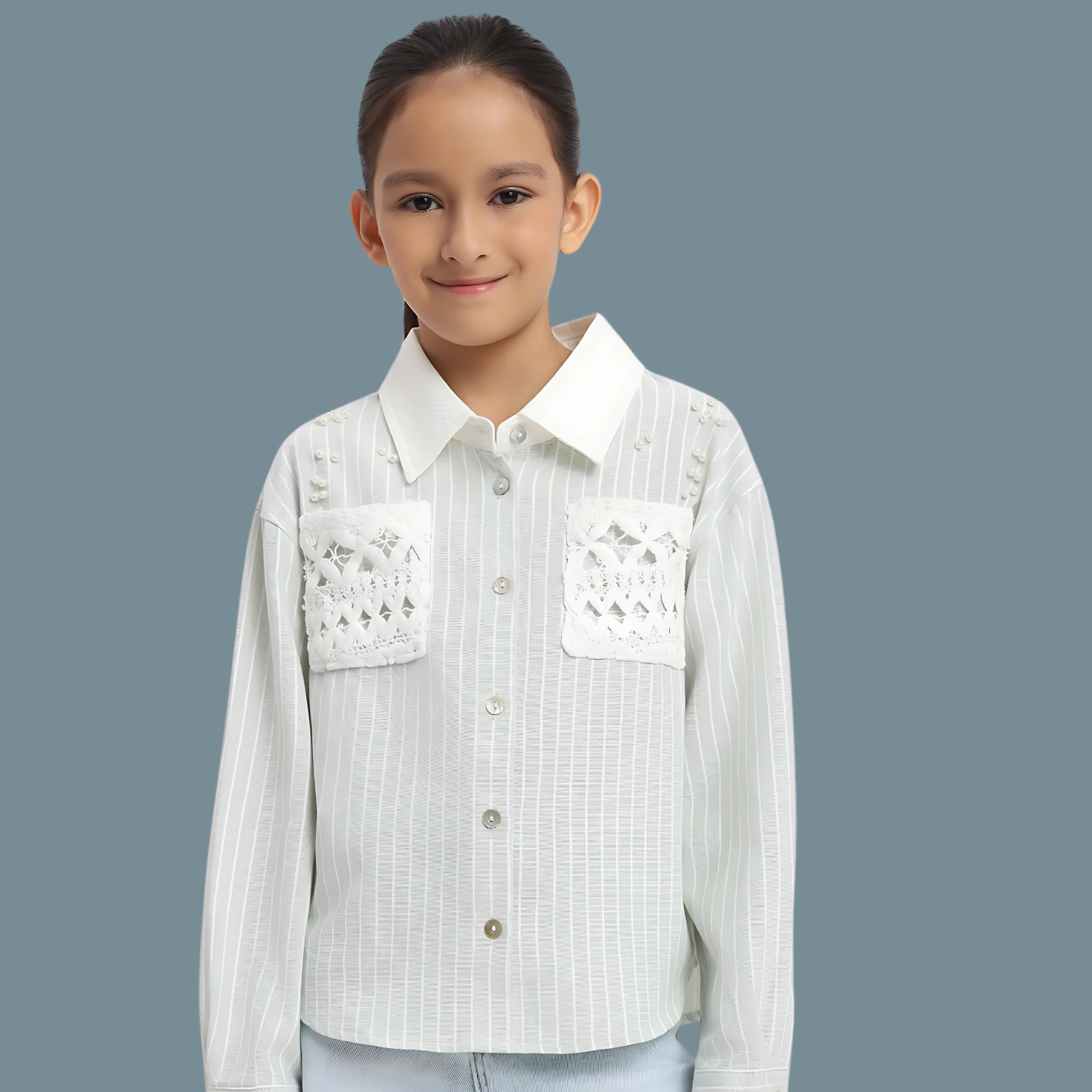 Girls Relaxed Fit Striped Collar Cotton Shirt