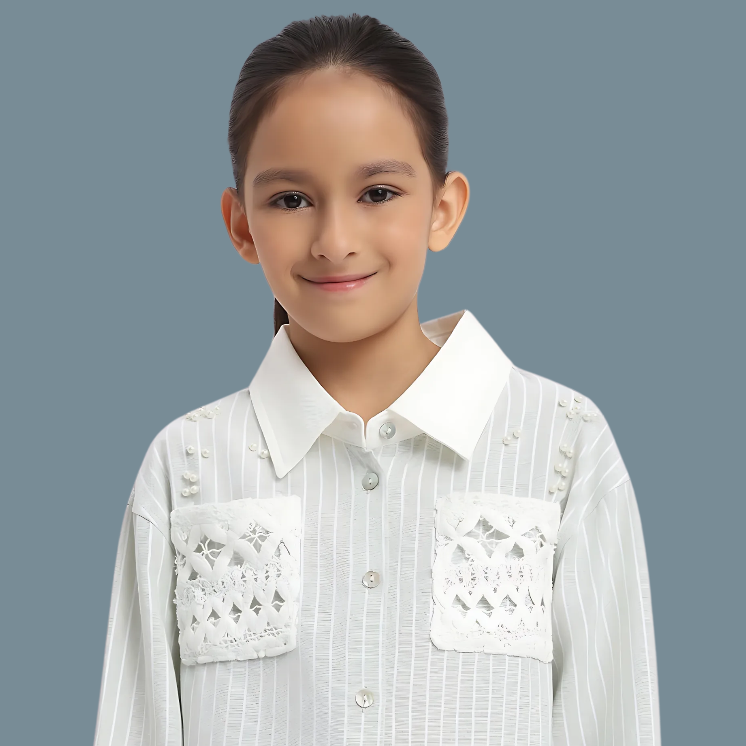 This Girls Relaxed Fit Cotton Shirt offers comfort and style with its breathable fabric and striped collar detail. Its relaxed fit ensures easy movement, perfect for everyday wear.