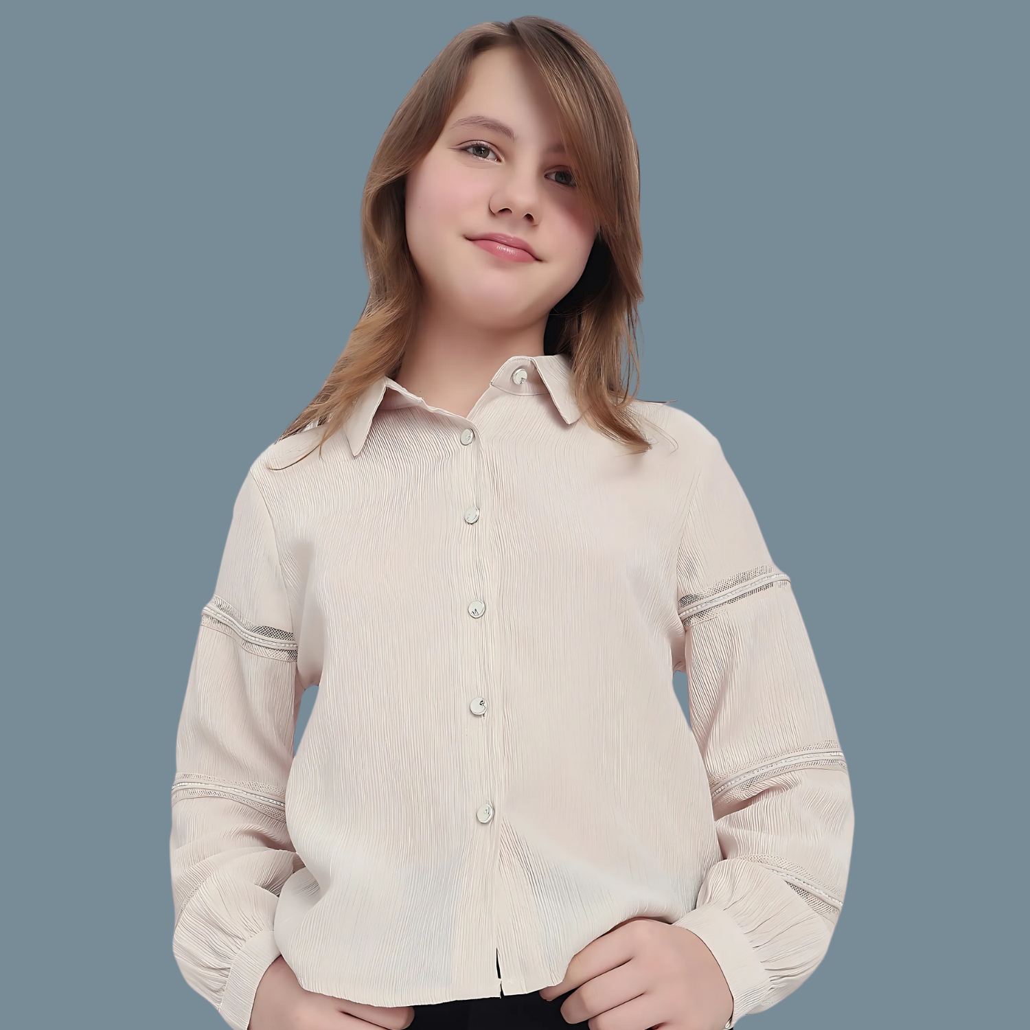 Girls Stylish Regular Fit Solid Spread Collar Shirt