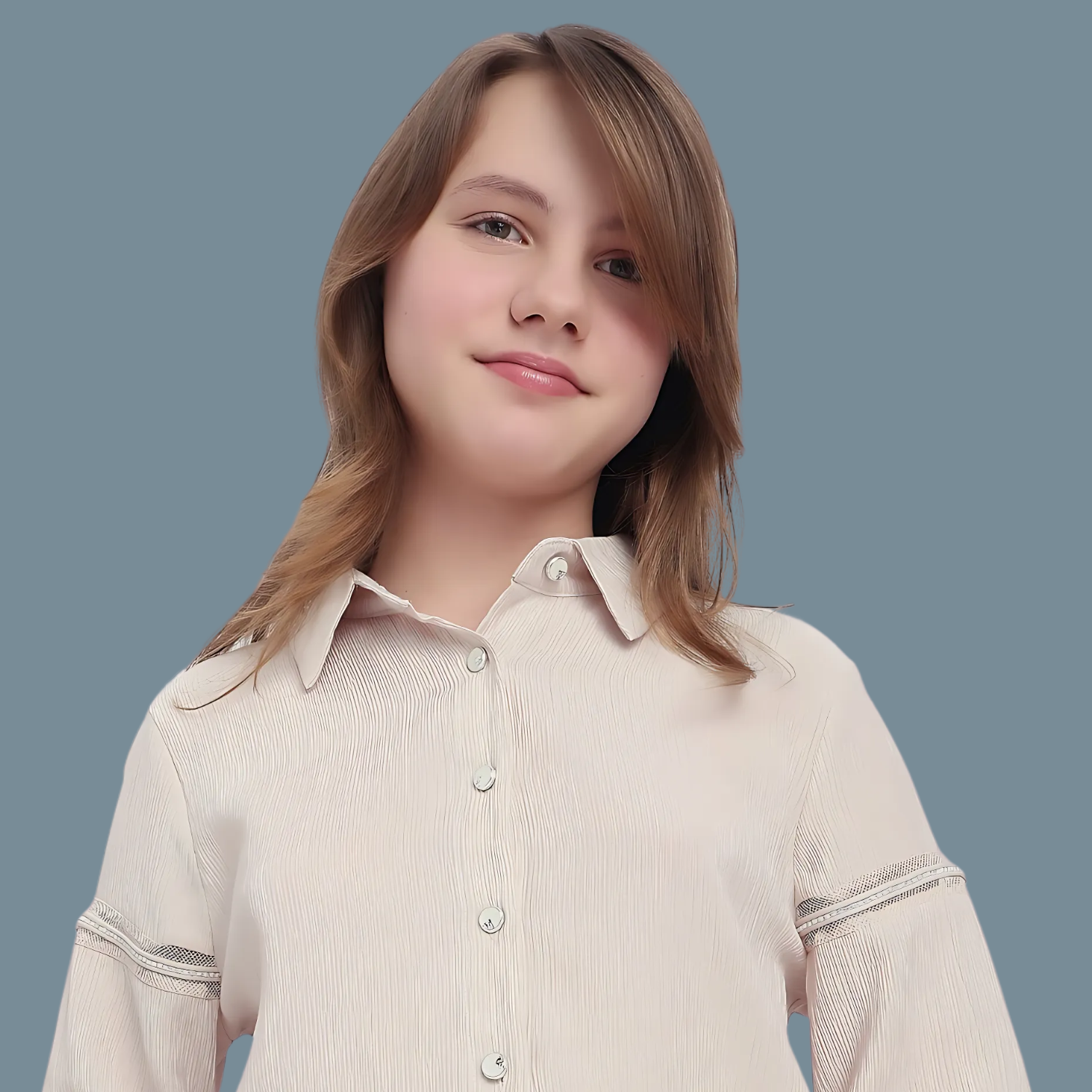 This girls' stylish shirt features a regular fit and a classic spread collar, offering a comfortable yet polished look. Its solid color design ensures versatile wear, easily pairing with various outfits for everyday or special occasions.