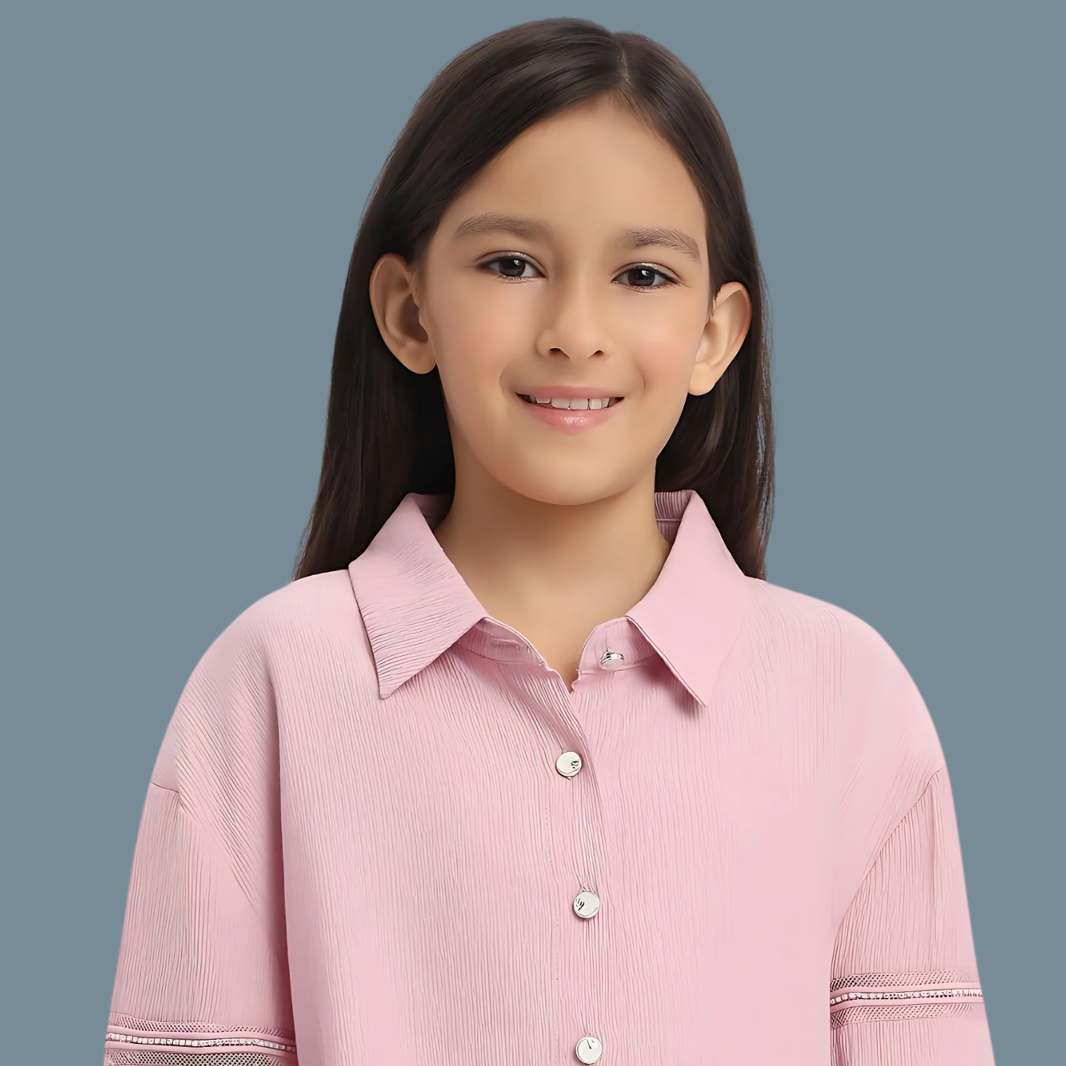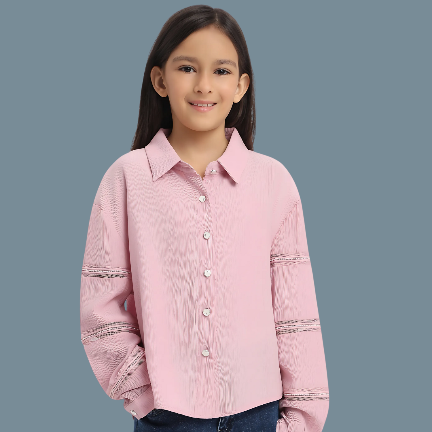Girls Stylish Regular Fit Solid Spread Collar Shirt