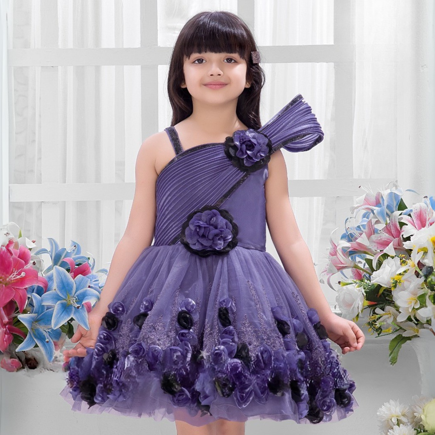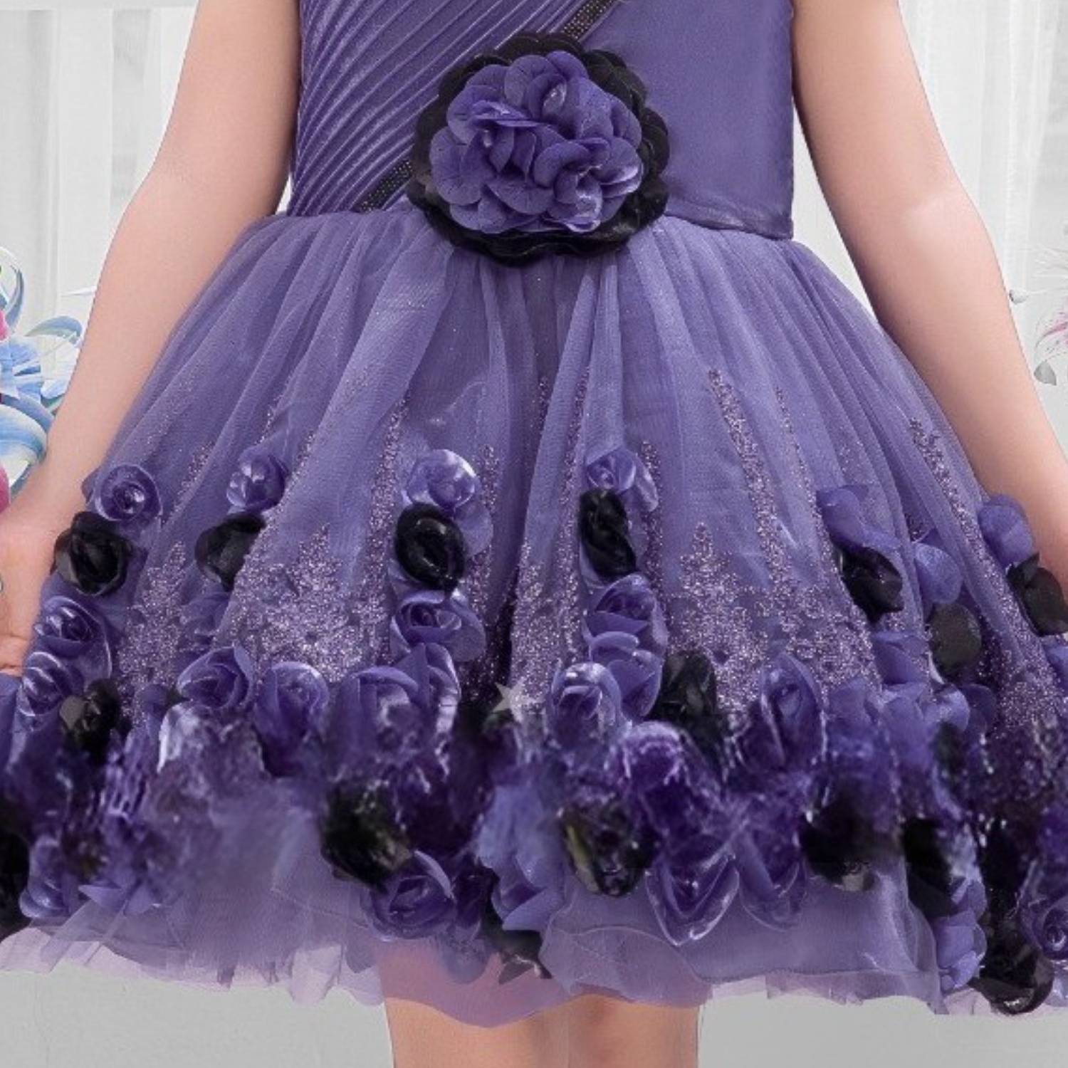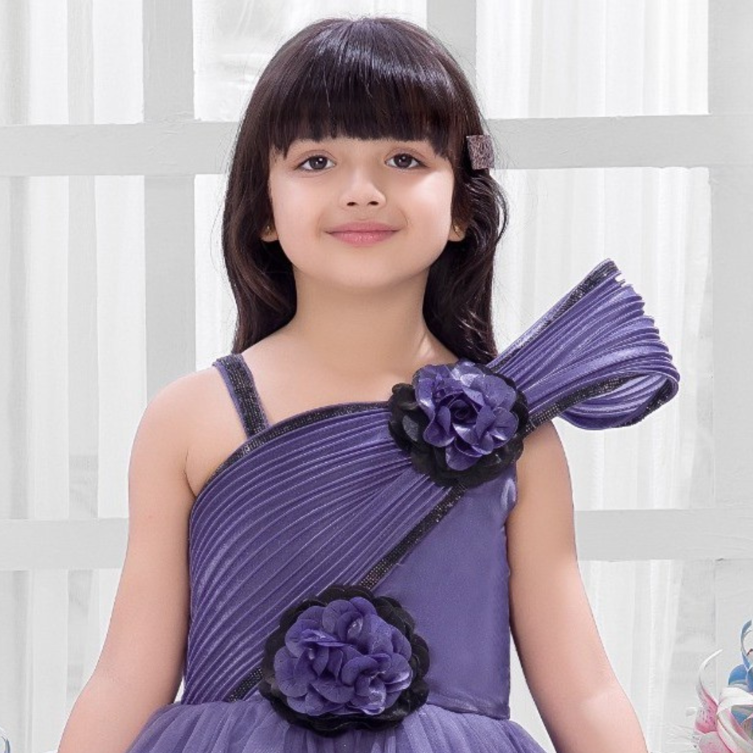 Girls Trendy purple Color Net Frock For Birthday Festive Wedding
