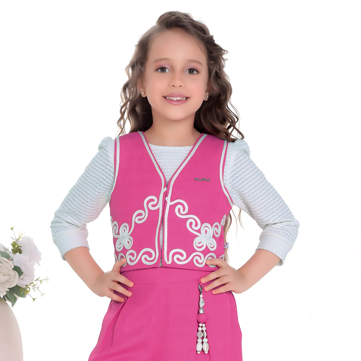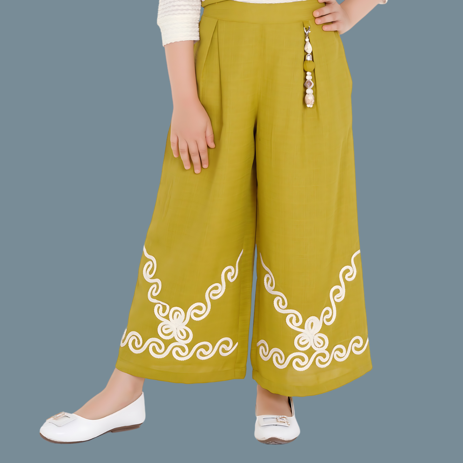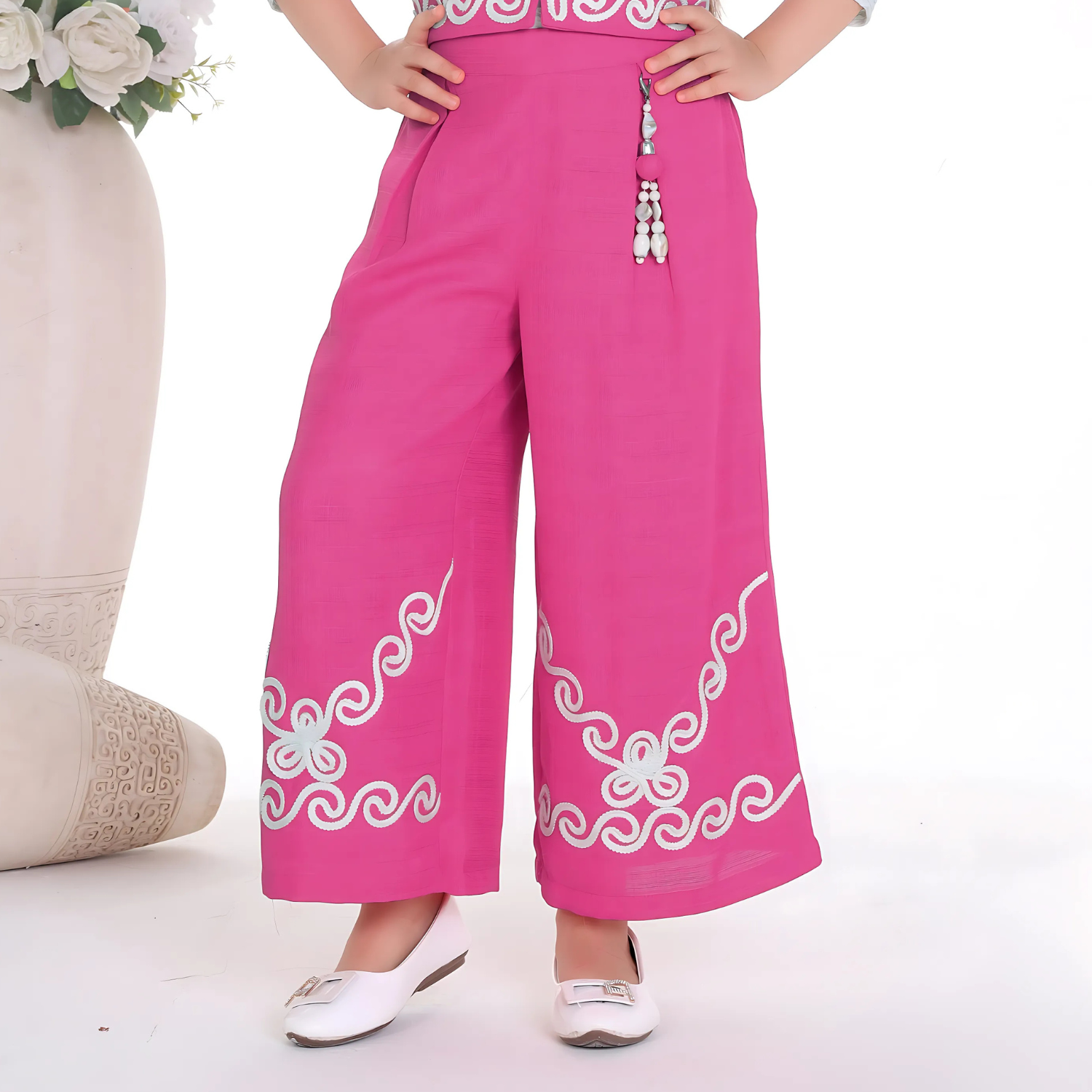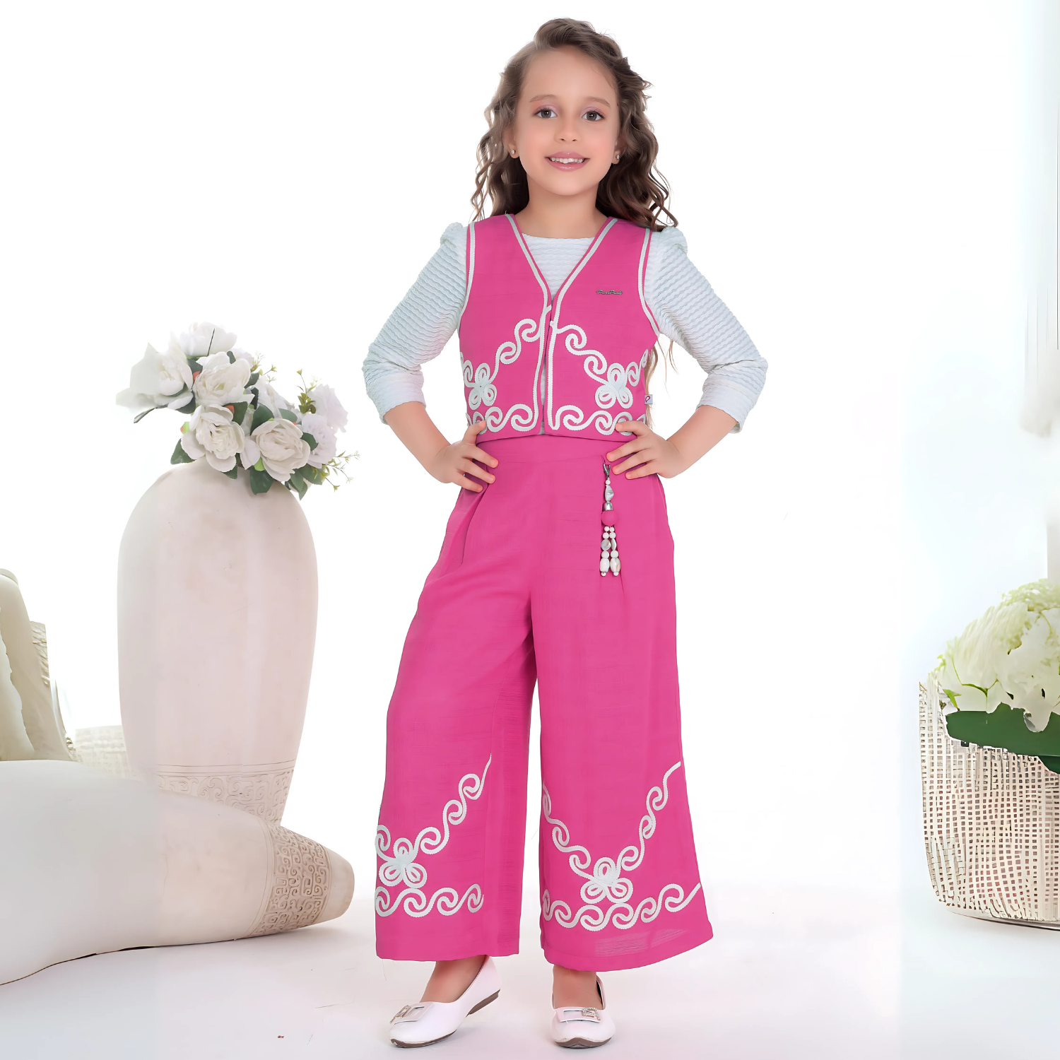 palazzo set. Designed for comfort and charm, the dress includes a cute belt attached to the pants at the waist and is made with soft, breathable fabric ideal for all-day wear. Suitable for kids