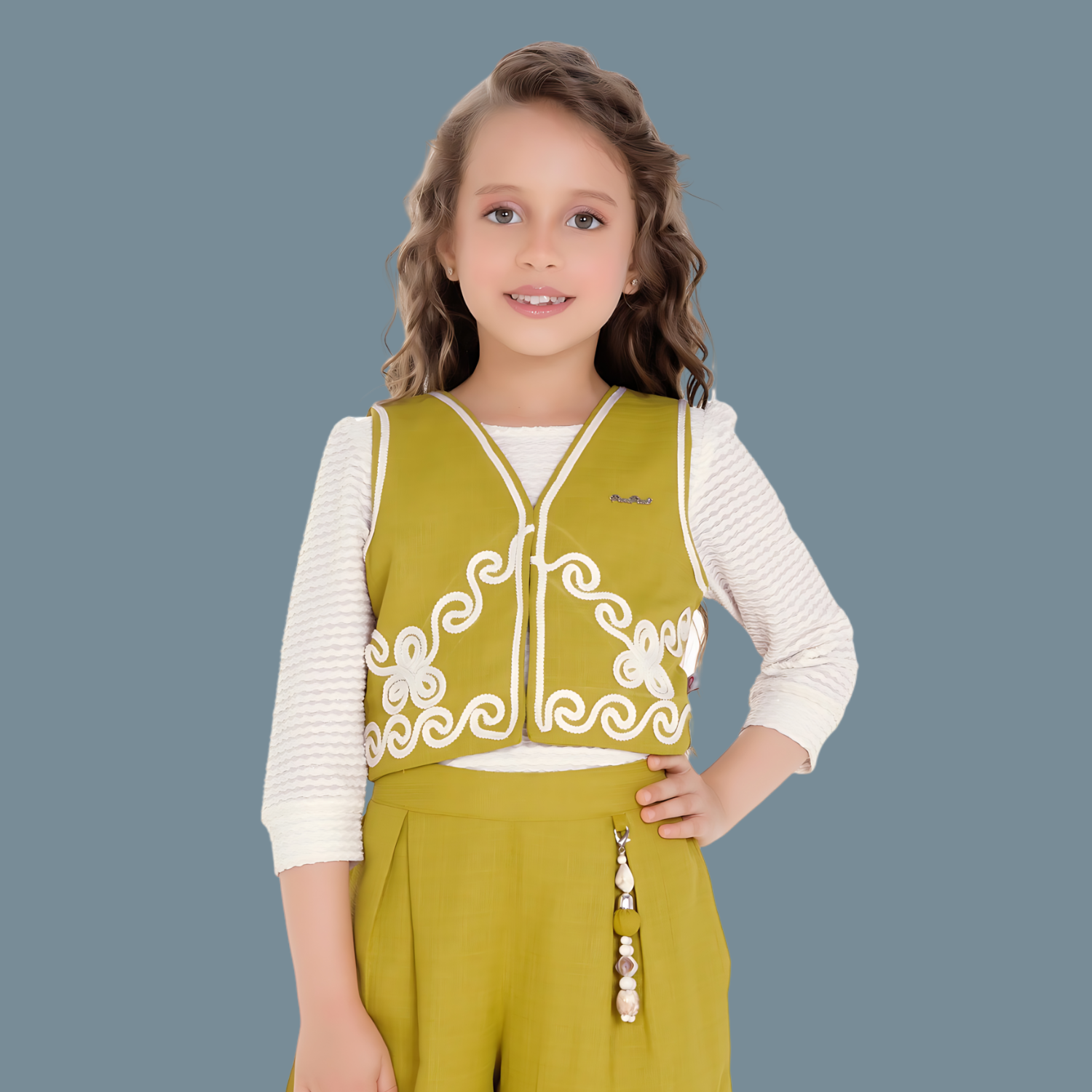 Girls Western Co-ords Set Mustard Color