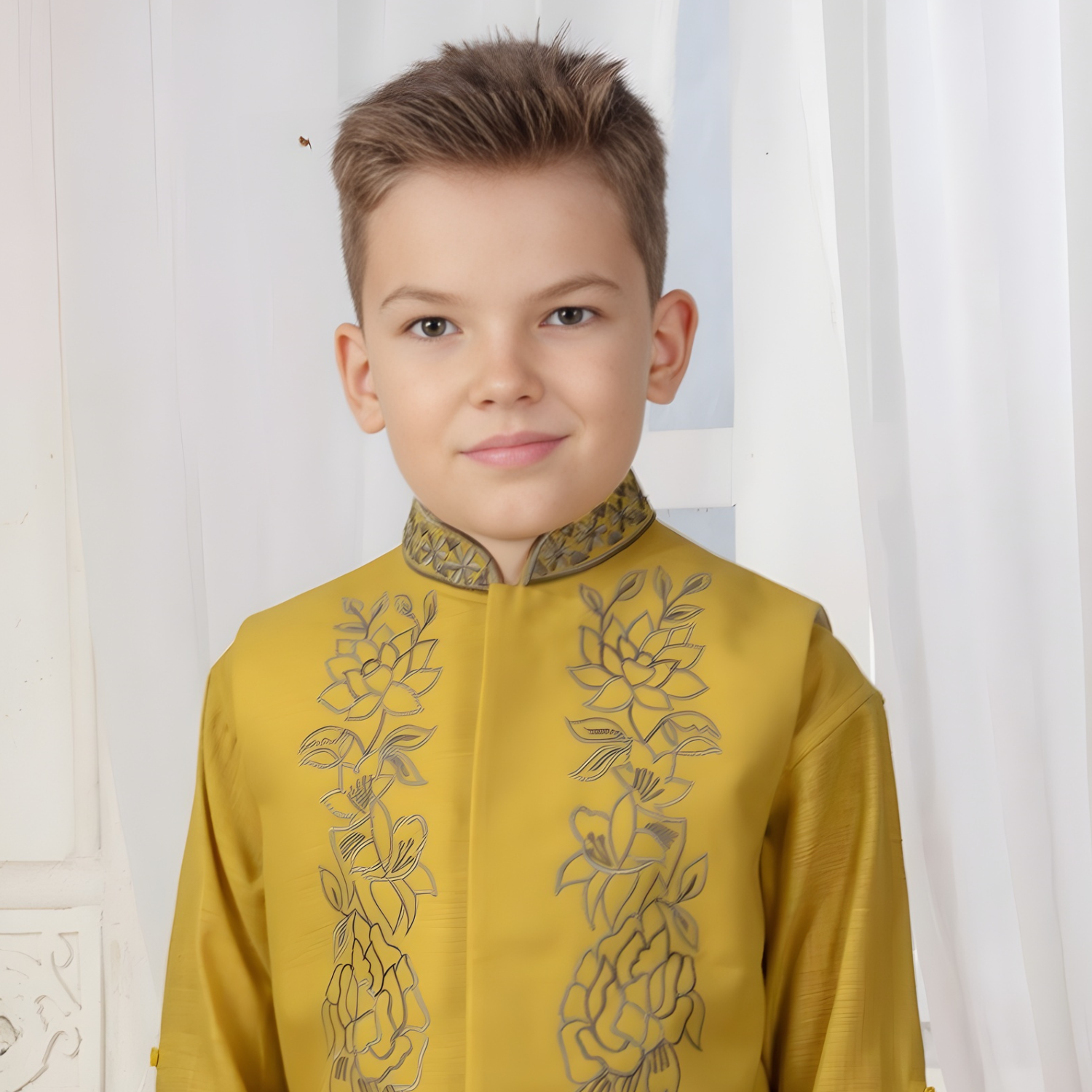Elegant Yellow cotton-silk blend waistcoat set perfect for festive occasions. Graceful design ensures sophisticated style for your celebrations.