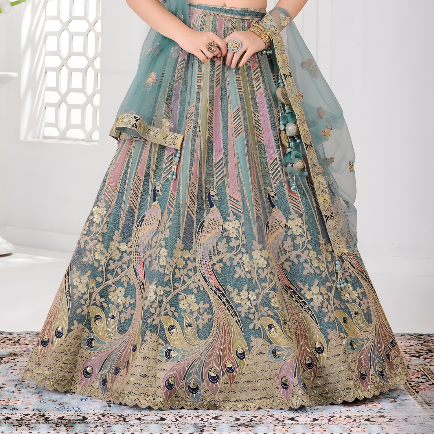 Green Designer Embroidered Wedding Bridal Lehenga Choli