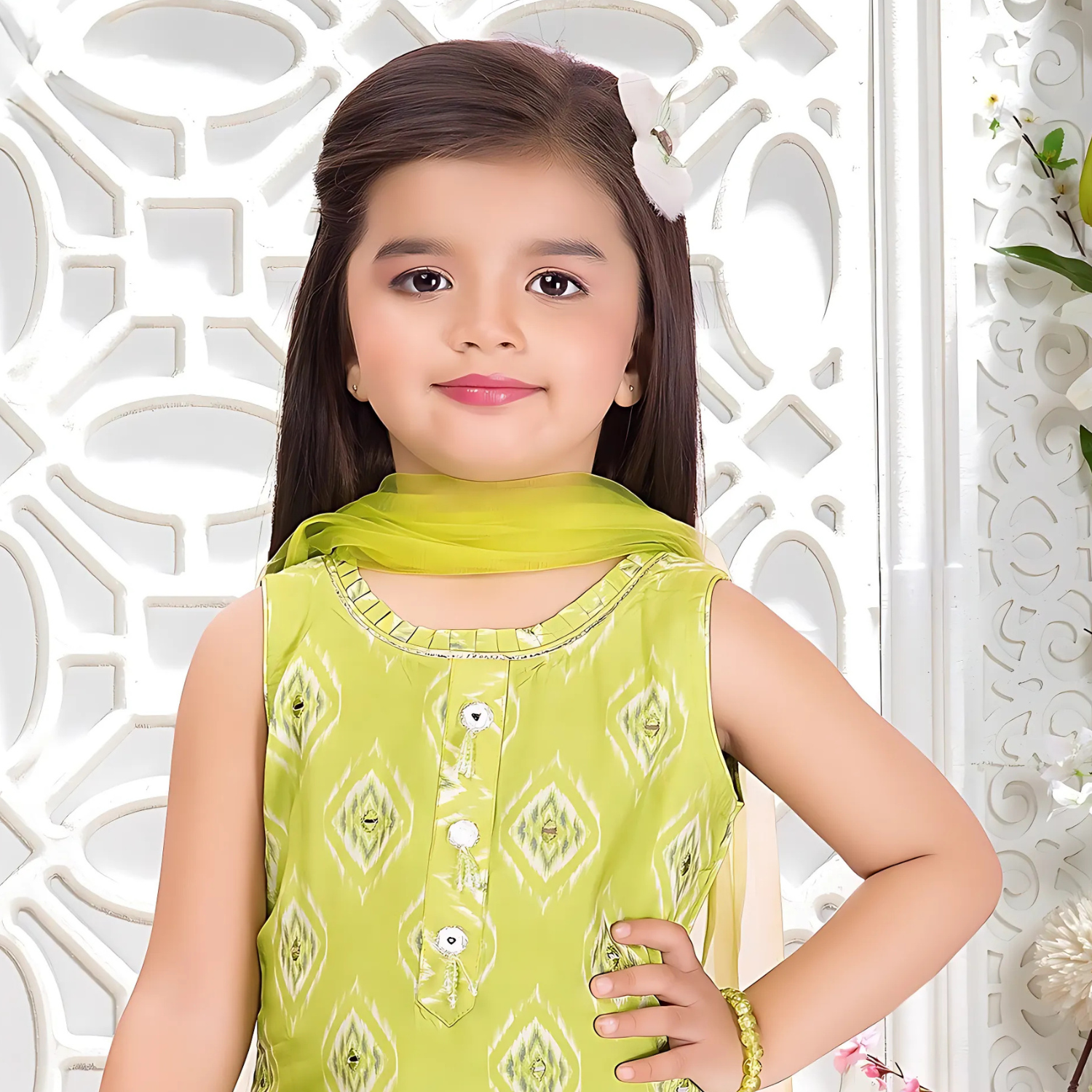 Elevate traditional elegance with this green printed kurta paired flawlessly with a matching sharara and dupatta, offering a cohesive and graceful ensemble. Crafted for comfort and style, it’s perfect for festive occasions and celebrations.