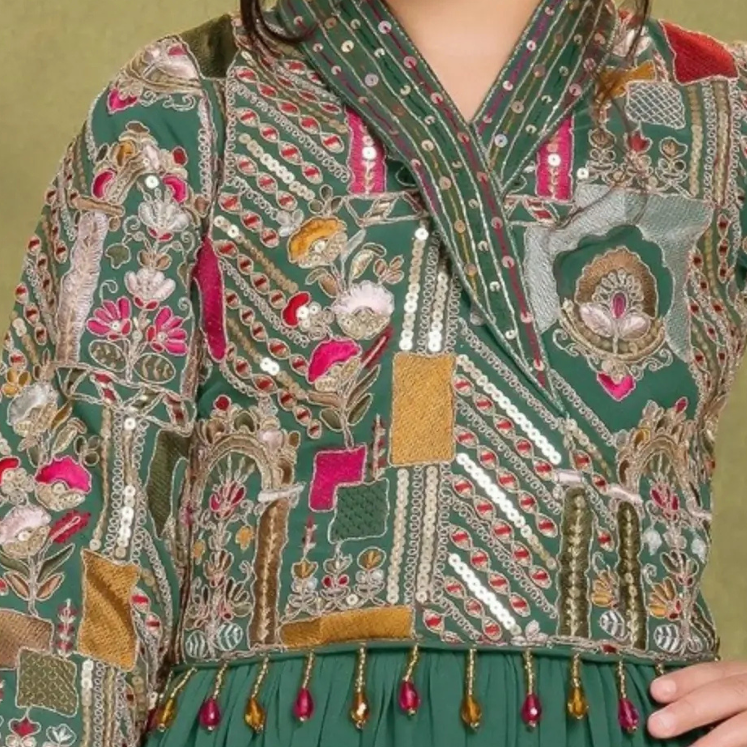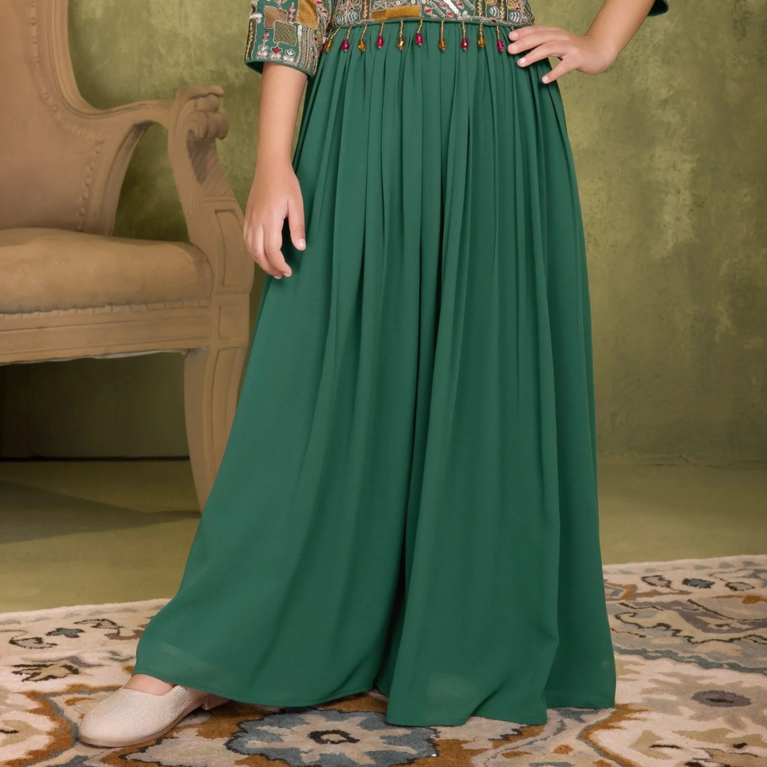 green crop top paired perfectly with a fancy palazzo set, blending comfort and elegance effortlessly. Ideal for both casual outings and festive occasions, it offers a chic silhouette with breathable fabric.