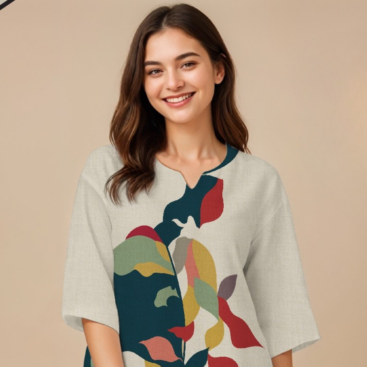 The Women Night Suit Set in Fawn features a comfortable printed design perfect for restful...