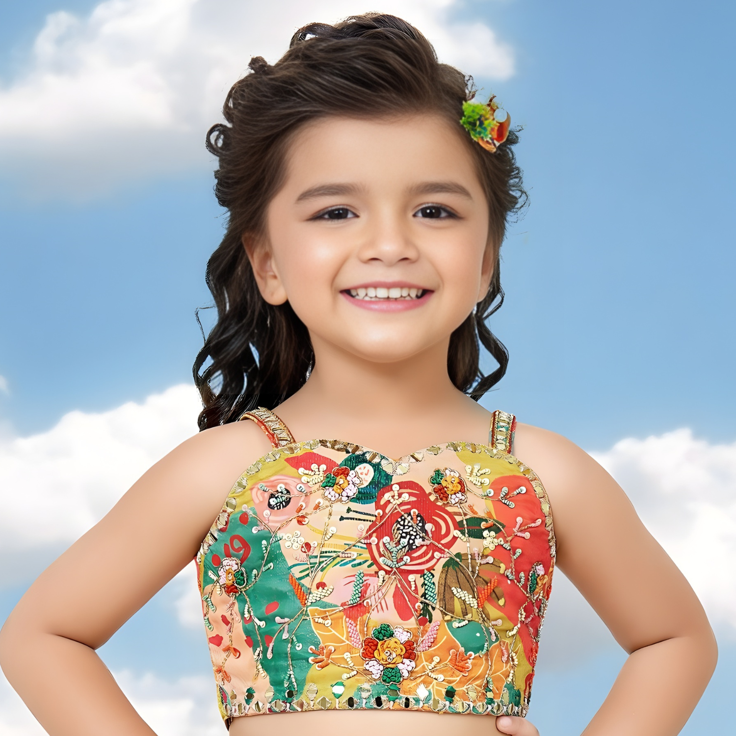Vibrant multi-colour digital print lehenga choli designed for girls. Perfect for festivals and celebrations with traditional charm and modern style.